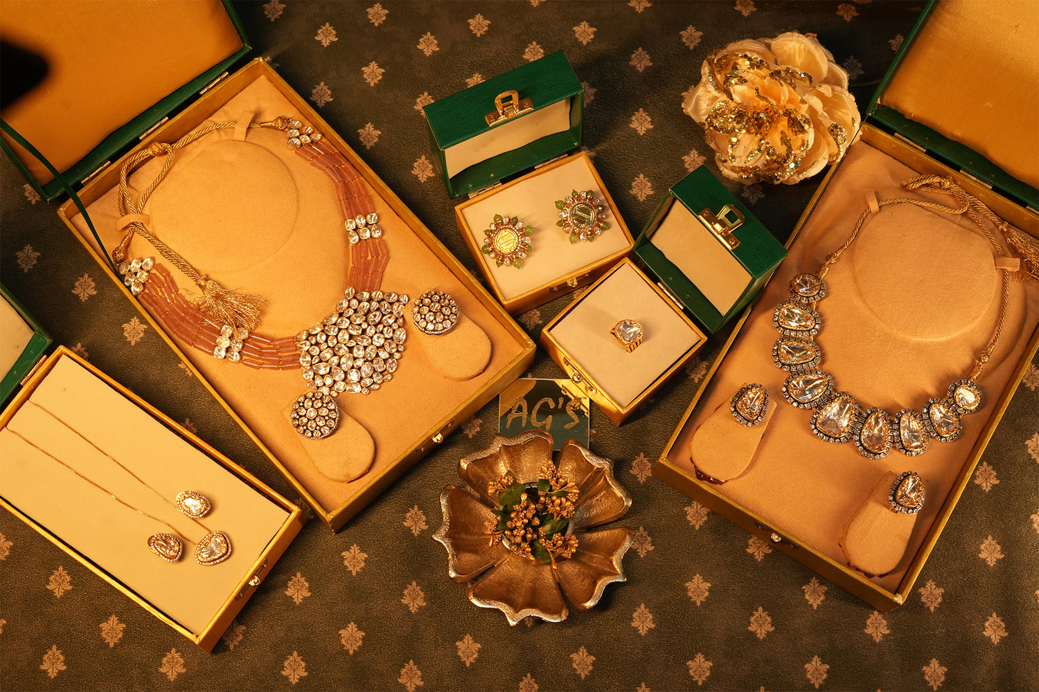 AG'S deals in exclusive Bridal, Traditional, Modern, Indo Western And Oxidised Fashion Jewellery. We also have huge collection of Hair Accessories, Potli, Clutches, Churas, Kaliras and much more...