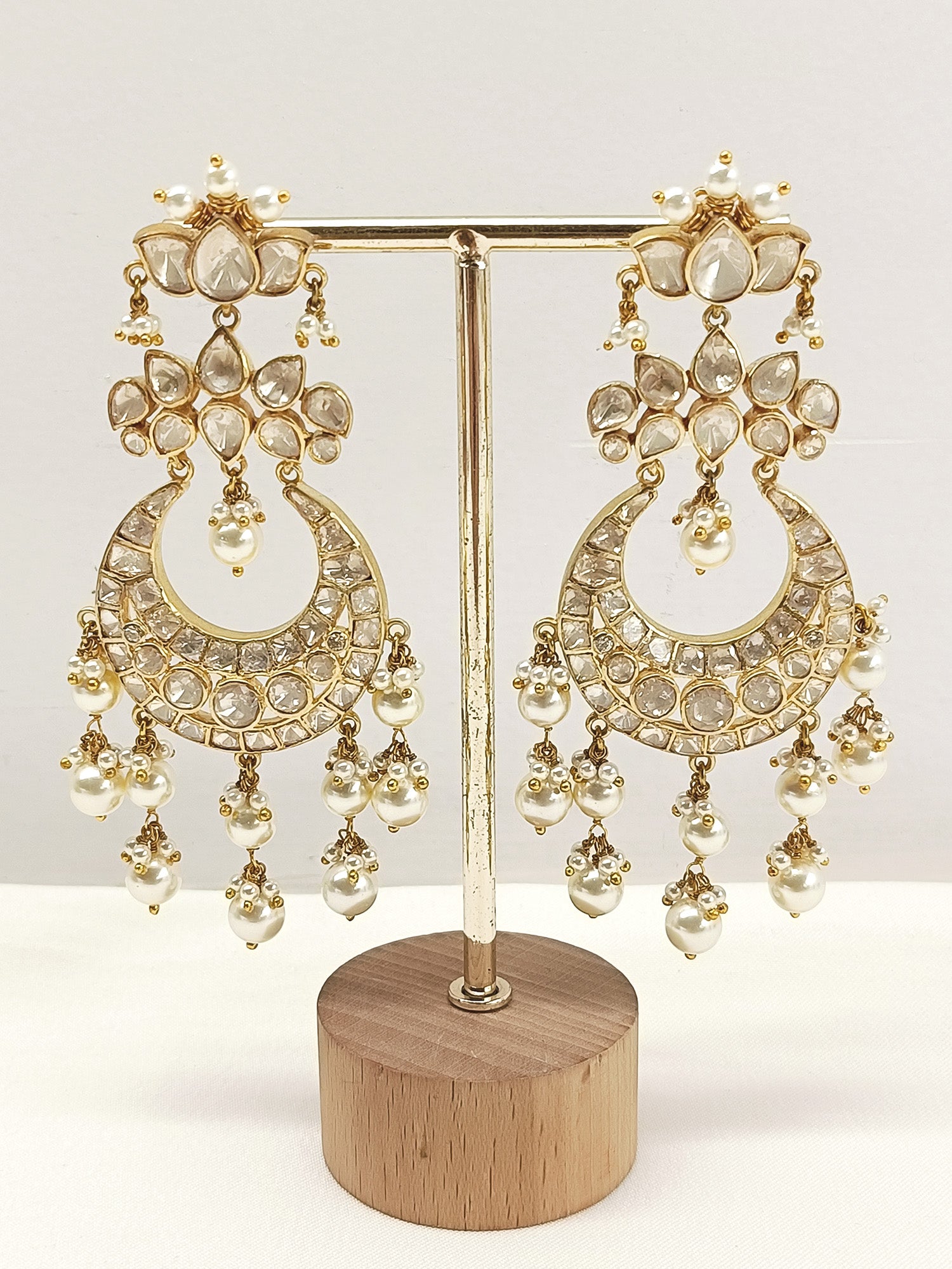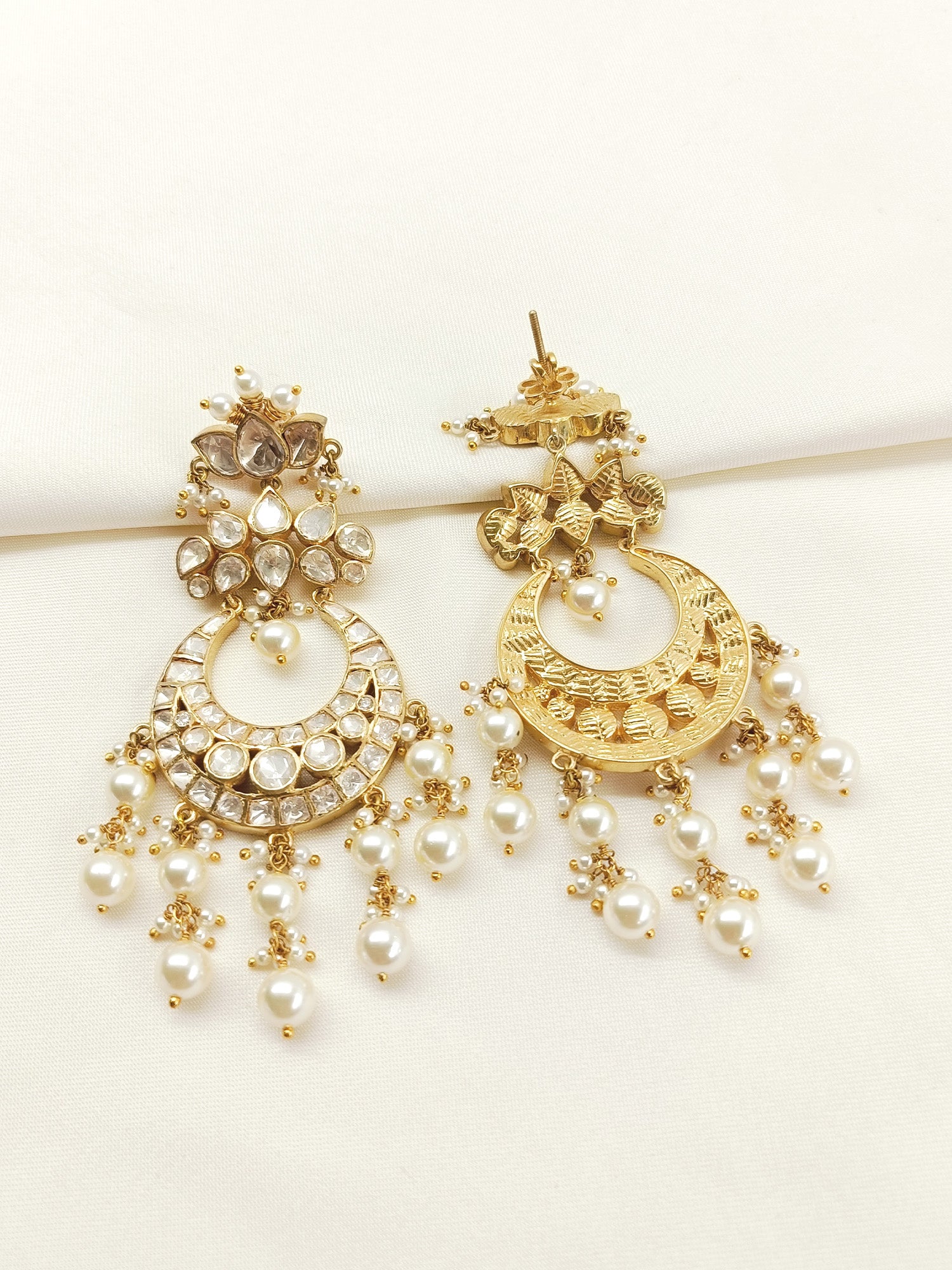 Elevate Your Jewelry Collection With These Exquisite 92.5 Silver Earrings, Masterfully Combining Traditional Polki Craftsmanship With Contemporary Moissanite Brilliance. The Lustrous Gold Plating Adds Warmth And Sophistication, While Delicate Pearl Drops Create Graceful Movement And Timeless Elegance. Perfect For Both Festive Occasions And Refined Everyday Wear, These Earrings Showcase Superior Craftsmanship And Enduring Style That Transcends Trends.