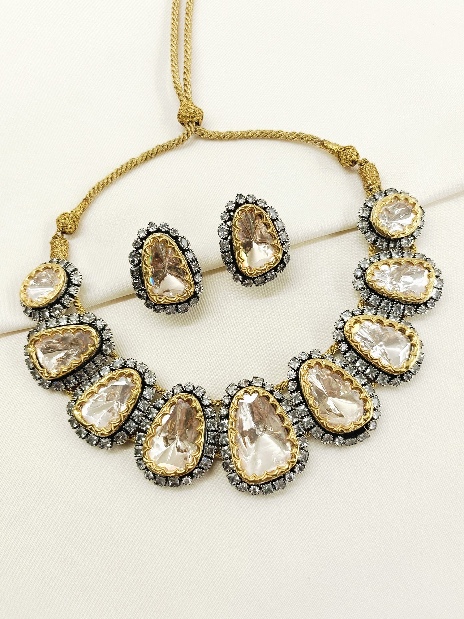 Crafted From Premium 92.5 Sterling Silver And Enhanced With Lustrous Gold Plating, This Moissanite Necklace Set Combines Elegance With Durability. Featuring Dazzling Moissanite Stones And Shimmering American Diamonds, It Offers Exceptional Brilliance And Sparkle. Perfect For Both Formal Occasions And Everyday Wear, This Set Ensures A Timeless Statement Of Sophistication And Style.