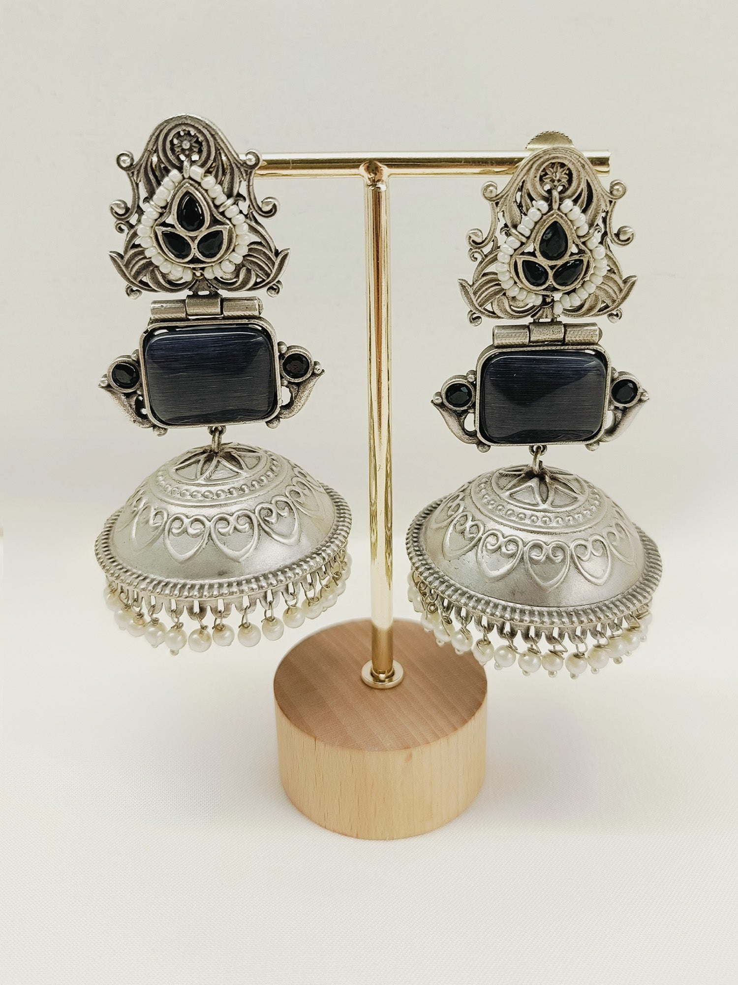 Introducing Oxidized Jhumki. Made With Oxidized Silver Plated Brass Metal, Elevate Your Style With These Unique And Beautifully Crafted Earrings That Add A Touch Of Elegance To Any Outfit. Perfect For Any Occasion. Order Yours Now.