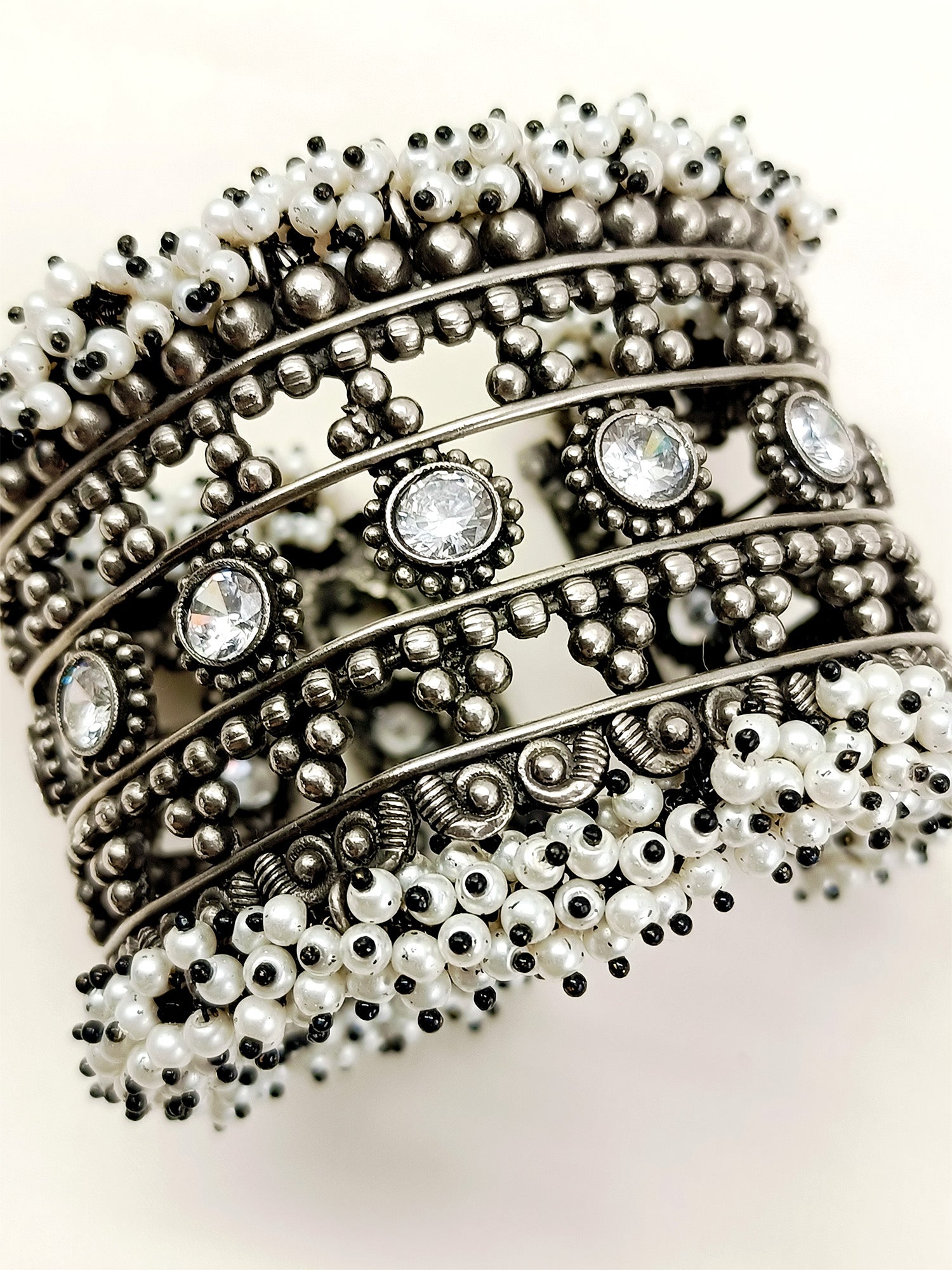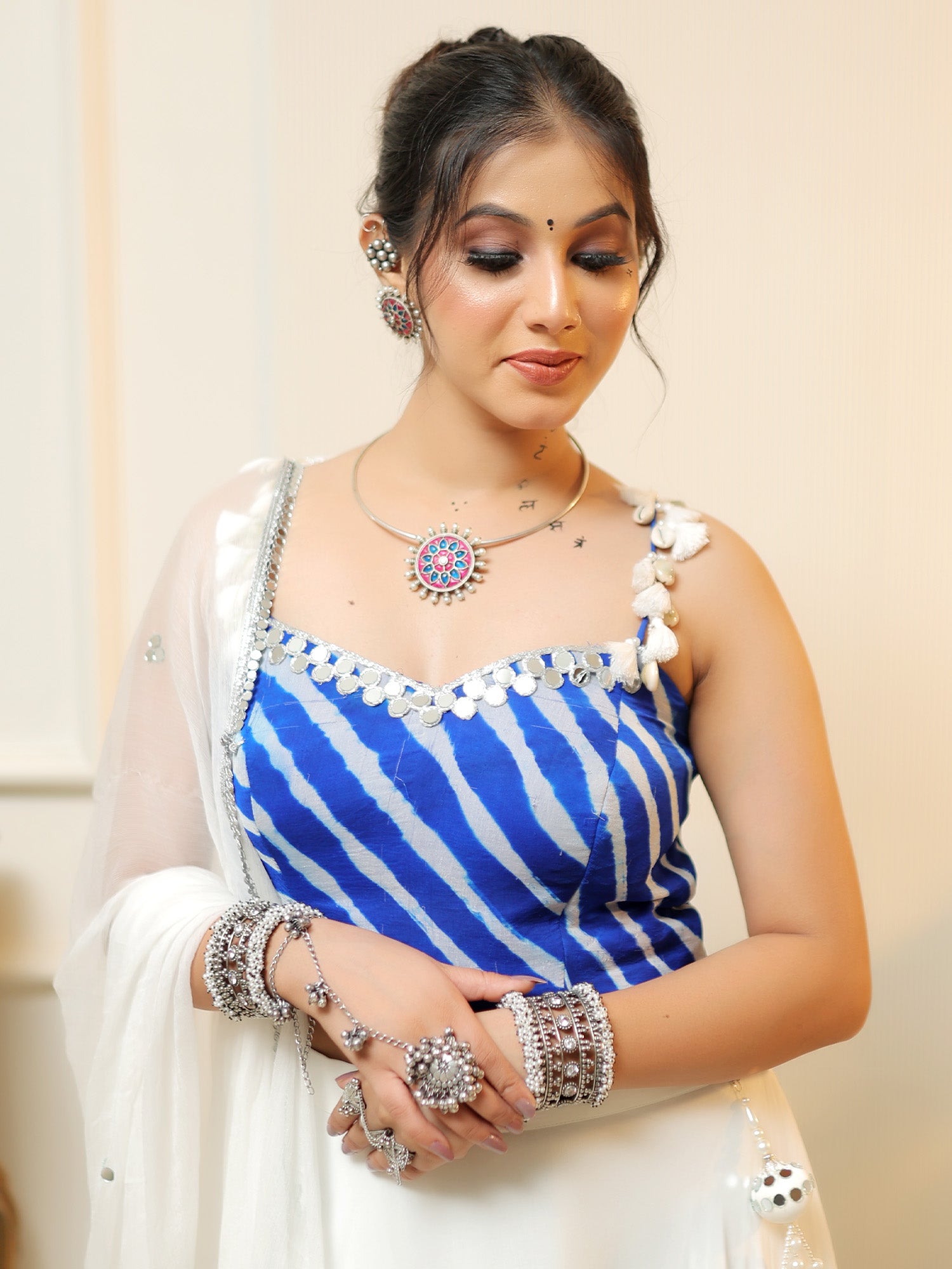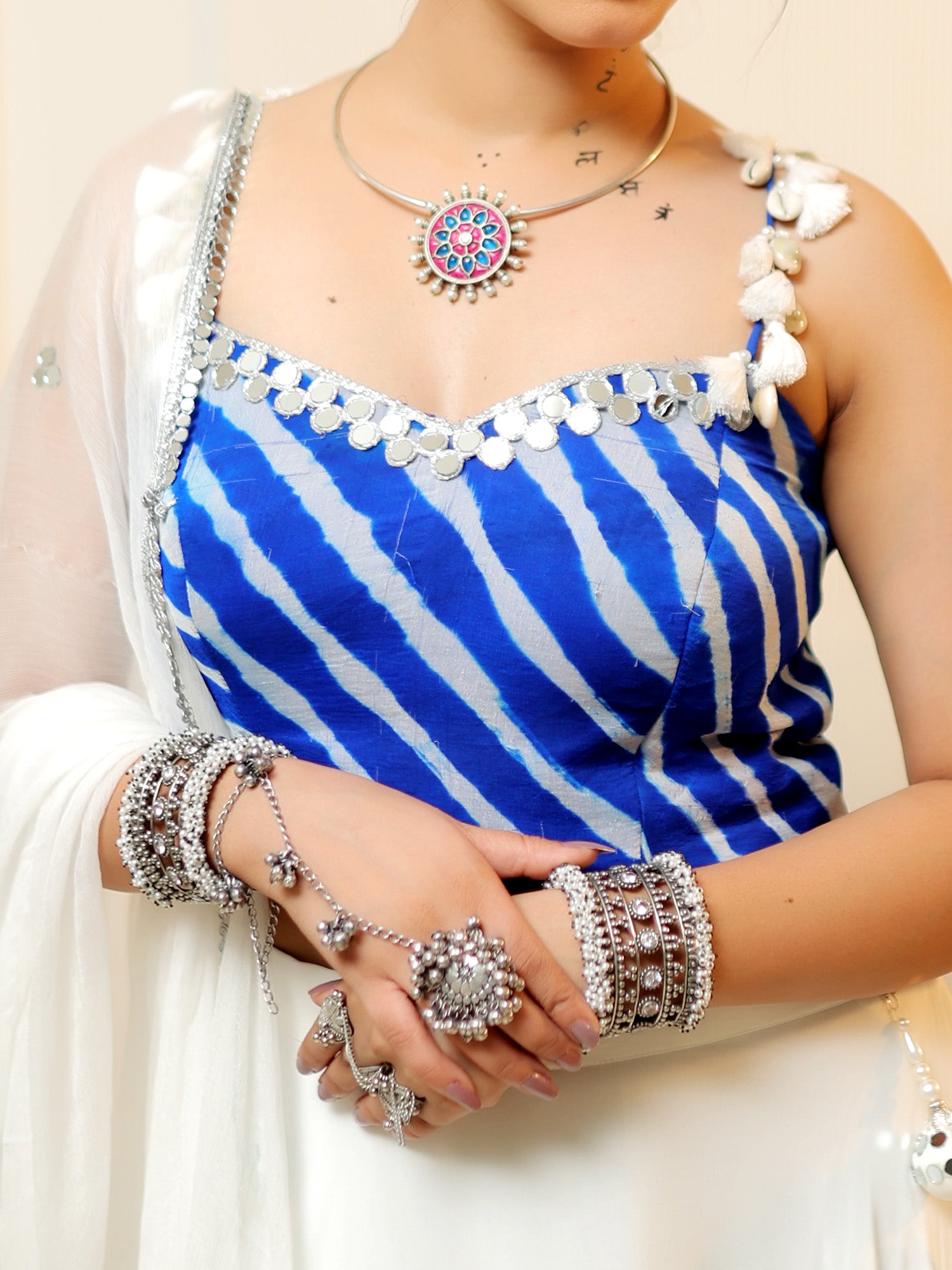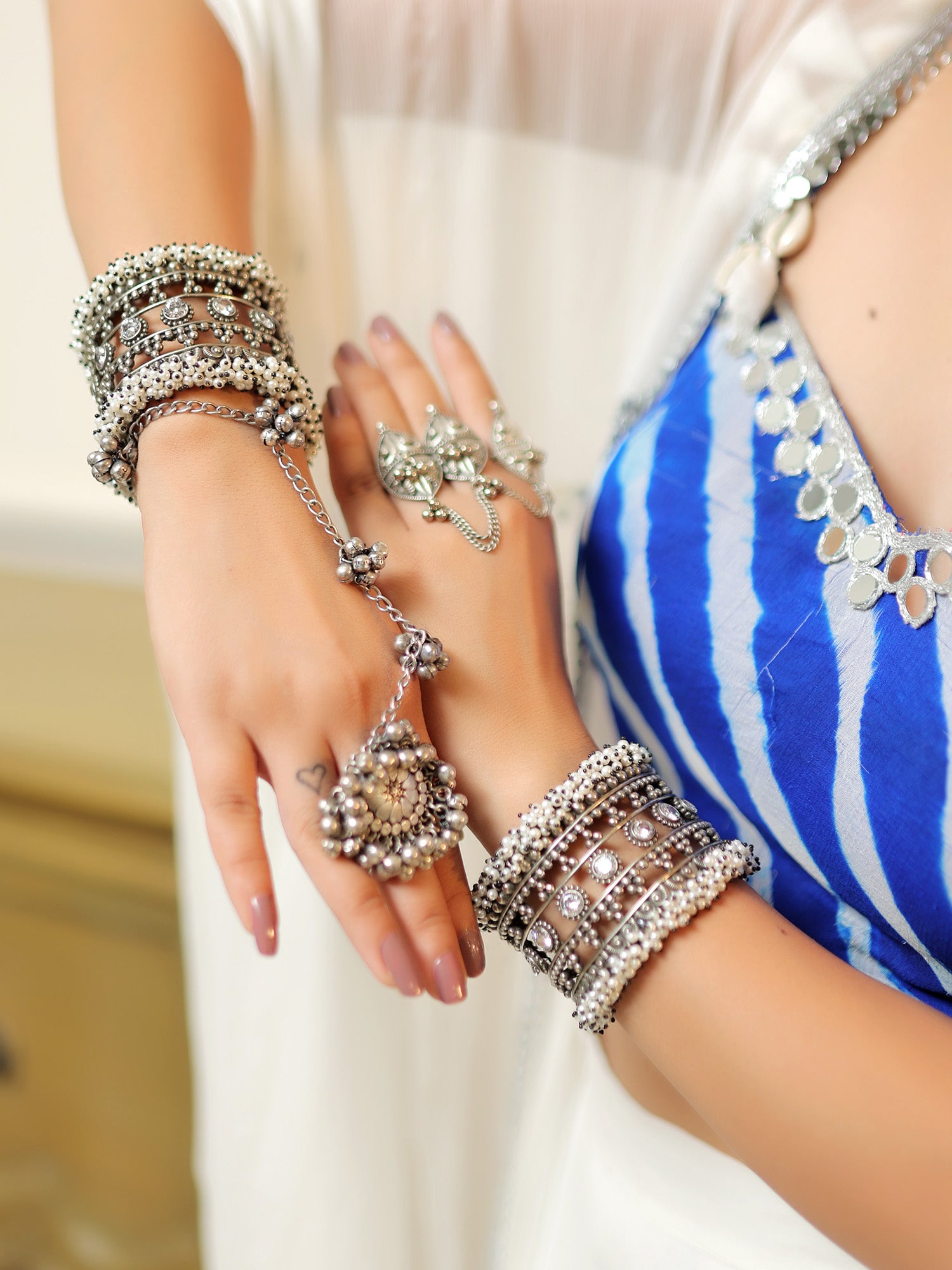 Add a touch of modern elegance to your festive wardrobe with our Charvi Jewellery Combo, designed to beautifully complement your Garba nights and special occasions. This oxidised jewellery set showcases contemporary patterns blended with traditional artistry, creating a unique and eye-catching look.