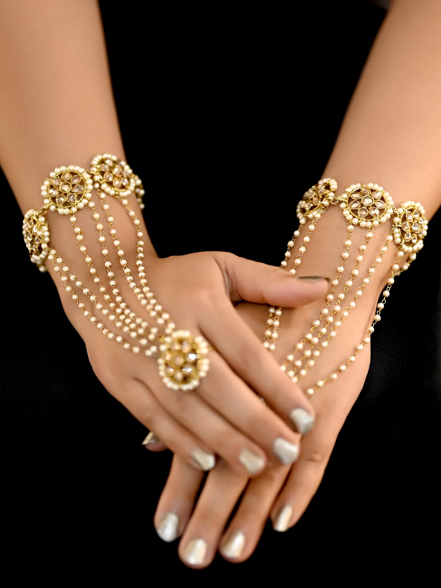 Jayati Copper Polki Stone Hathphool Set Of 2