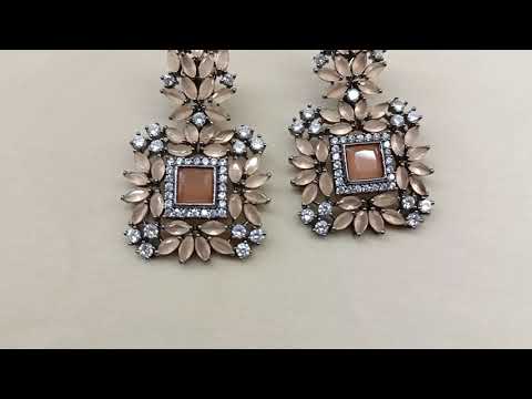 Chetna Diamond Work Rhodium Plated Copper Victorian Earrings