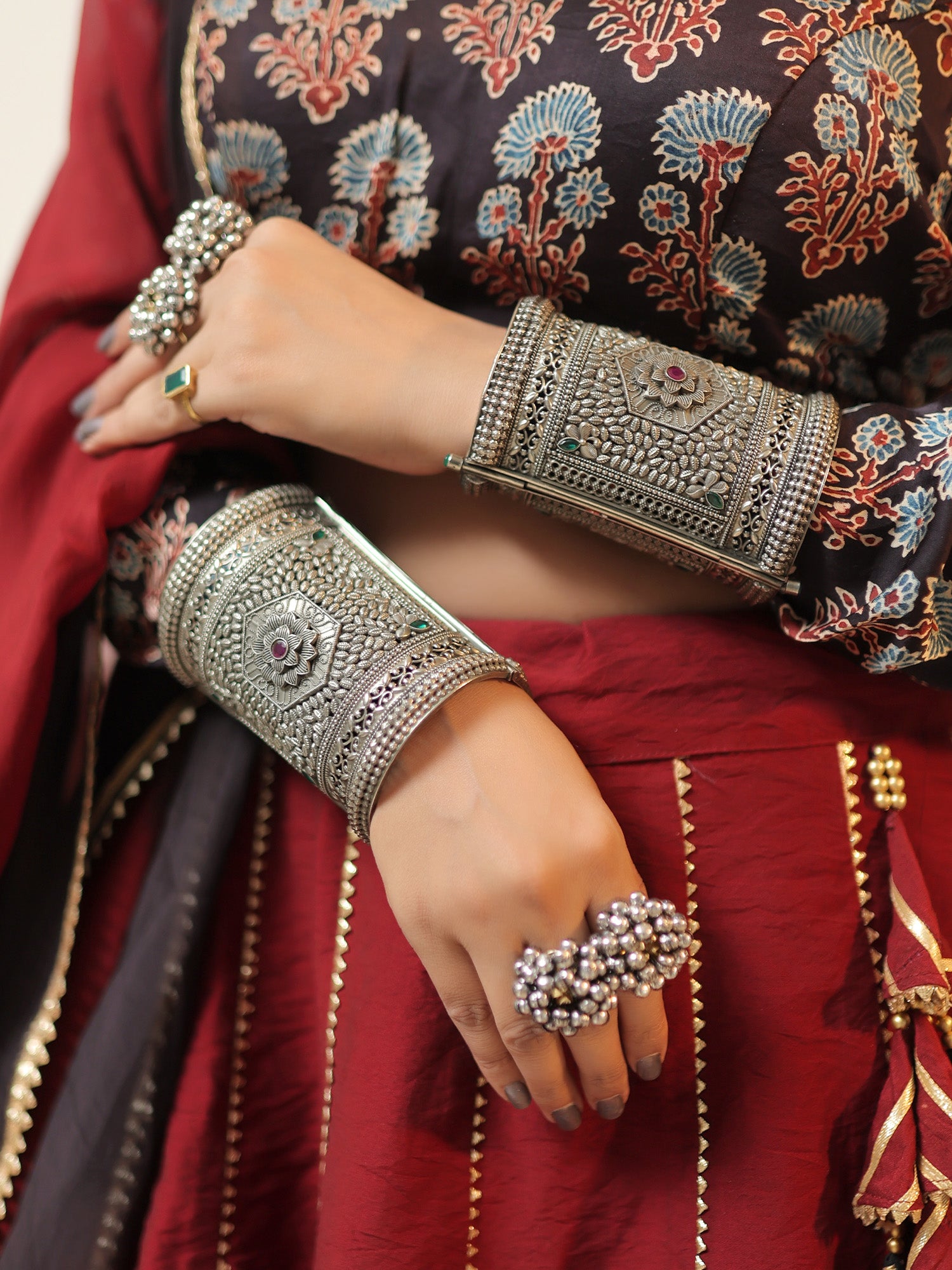 Make a bold statement this festive season with our Dvija Jewellery Combo, crafted to add dazzling elegance to your Garba nights and special occasions. This oxidised jewellery set features intricate patterns and traditional designs, blending heritage charm with modern allure.