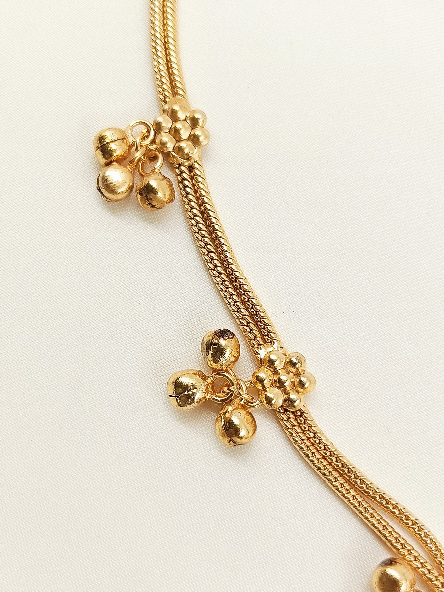 This Golden Antique Waist Belt, Crafted From Brass Metal With Antique Gold Plating, Showcases Traditional Artistry Enhanced By Delicate Ghunghroo Detailing. Designed To Accentuate The Waist Elegantly, It Combines Vintage Charm With Cultural Significance, Making It A Distinguished Accessory For Special Occasions And Traditional Attire.