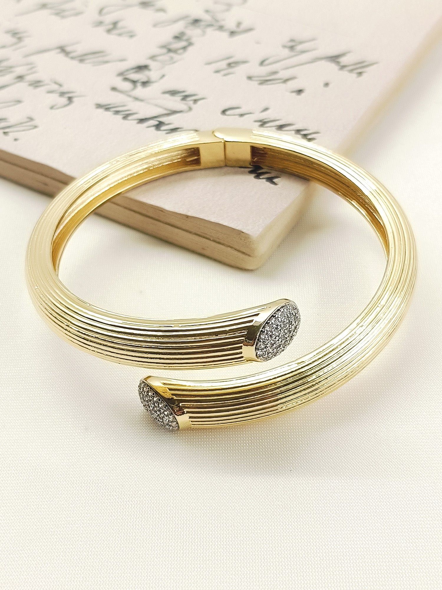 Elevate Your Style With This Golden Western Bracelet, Crafted From Durable Gold-plated Brass Metal For Long-lasting Shine. Embellished With Sparkling American Diamonds, It Offers A Sophisticated Blend Of Western Charm And Modern Elegance, Perfect For Adding A Refined Touch To Any Outfit.