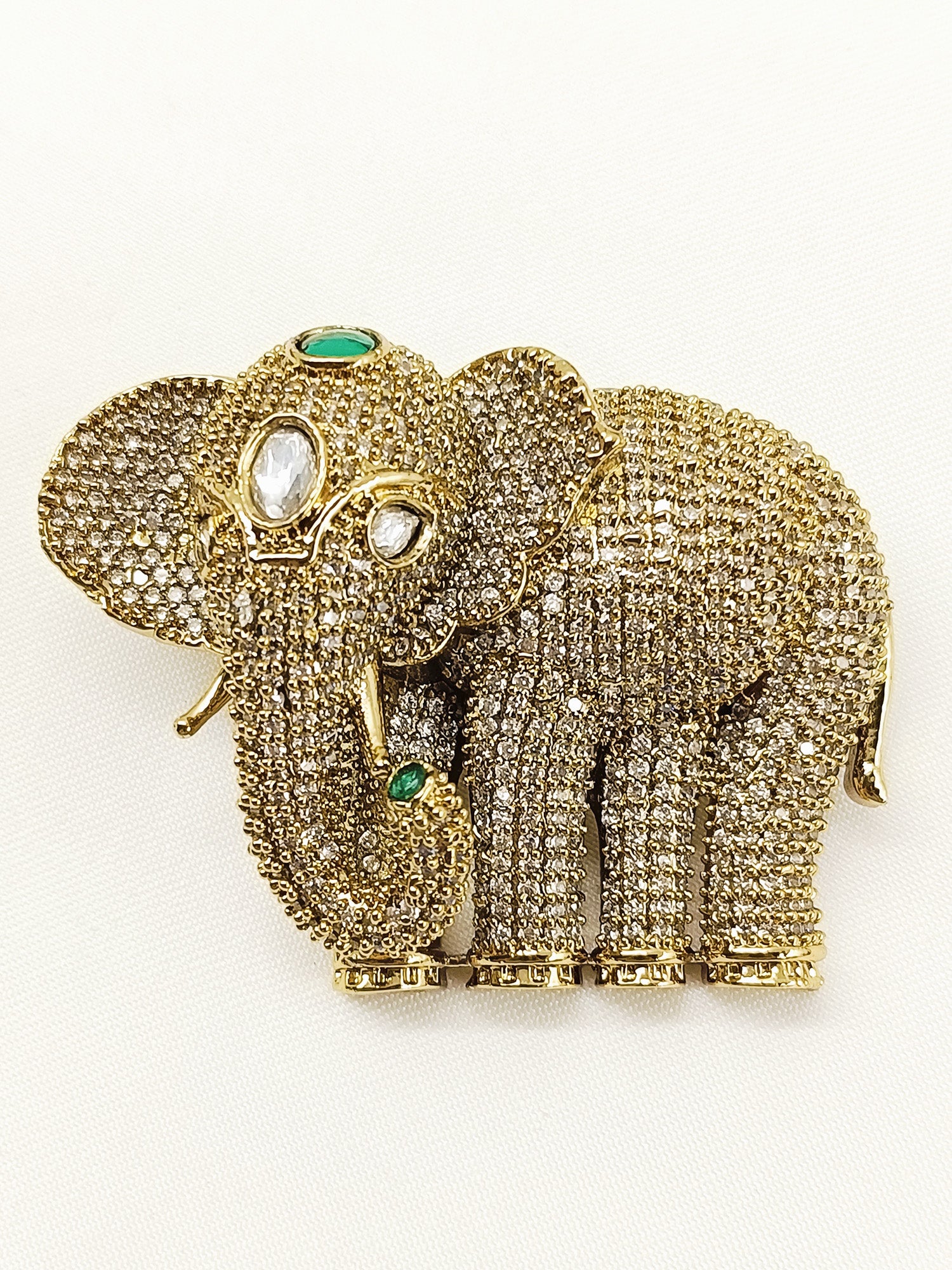 This Victorian-inspired Brooch Is A True Statement Piece, Featuring Antique Gold Plating And Intricate Kundan And American Diamond Detailing, Accented By A Bold White Center Stone. Crafted With Quality Brass Metal, It Adds A Touch Of Elegance To Any Outfit. Embrace Timeless Style With Our White Elephant Brooch.