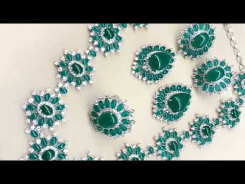 Aatifa Green Emerald And American Diamond Necklace Set With Beautiful Finger Ring