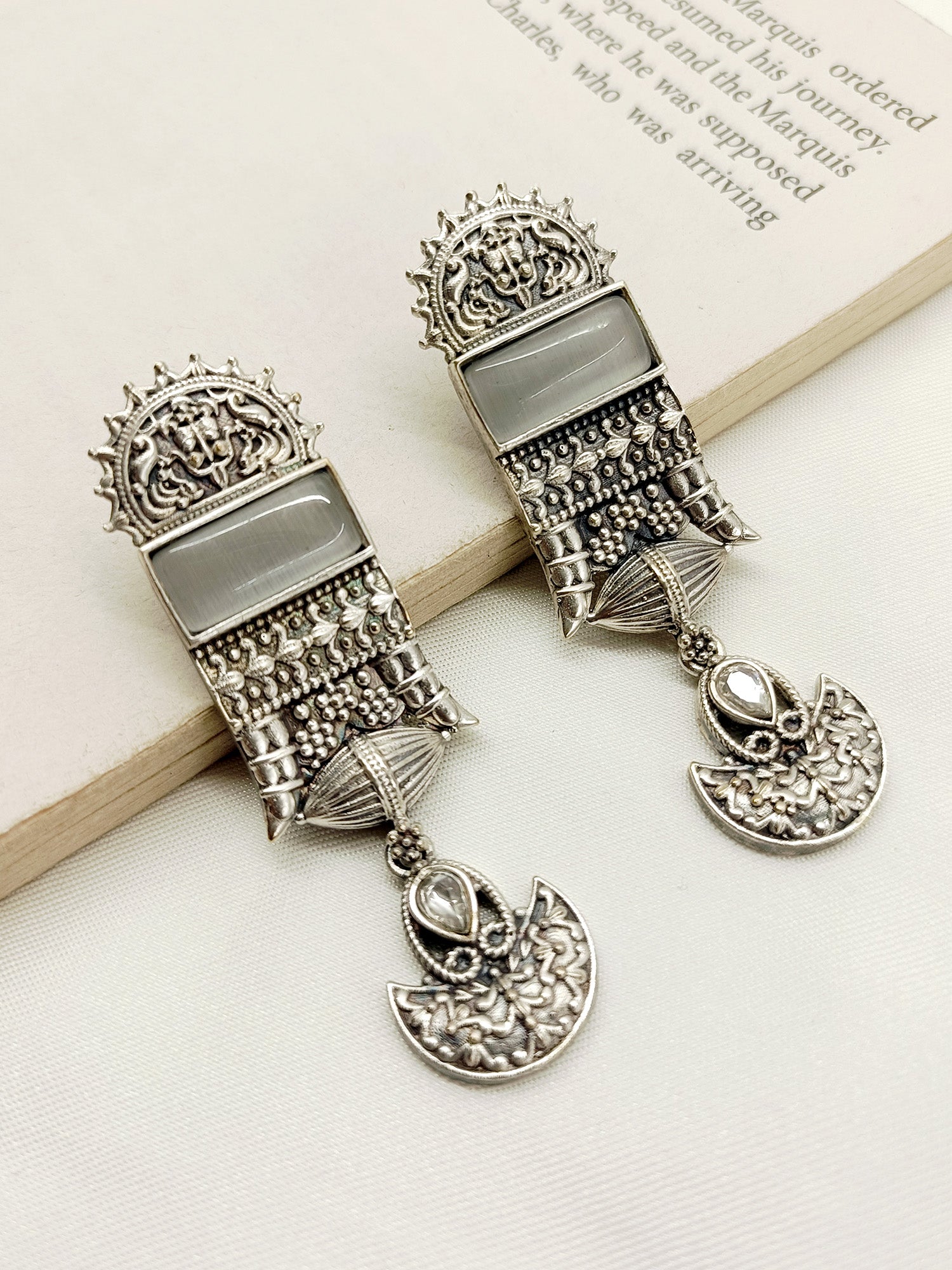 Mrunal Grey Oxidized Earrings