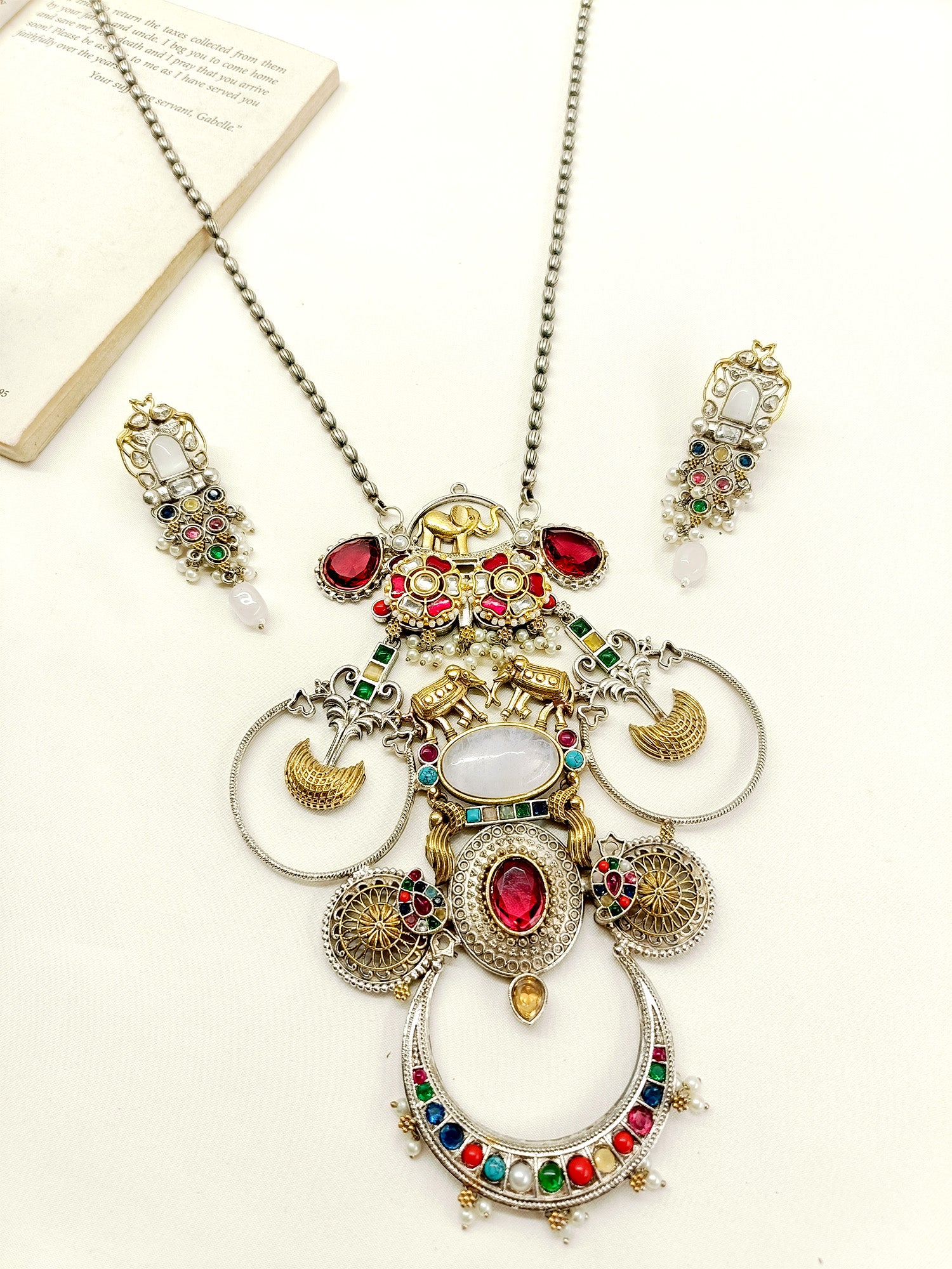 Mugdha Multi Colour Long Oxidized Necklace Set