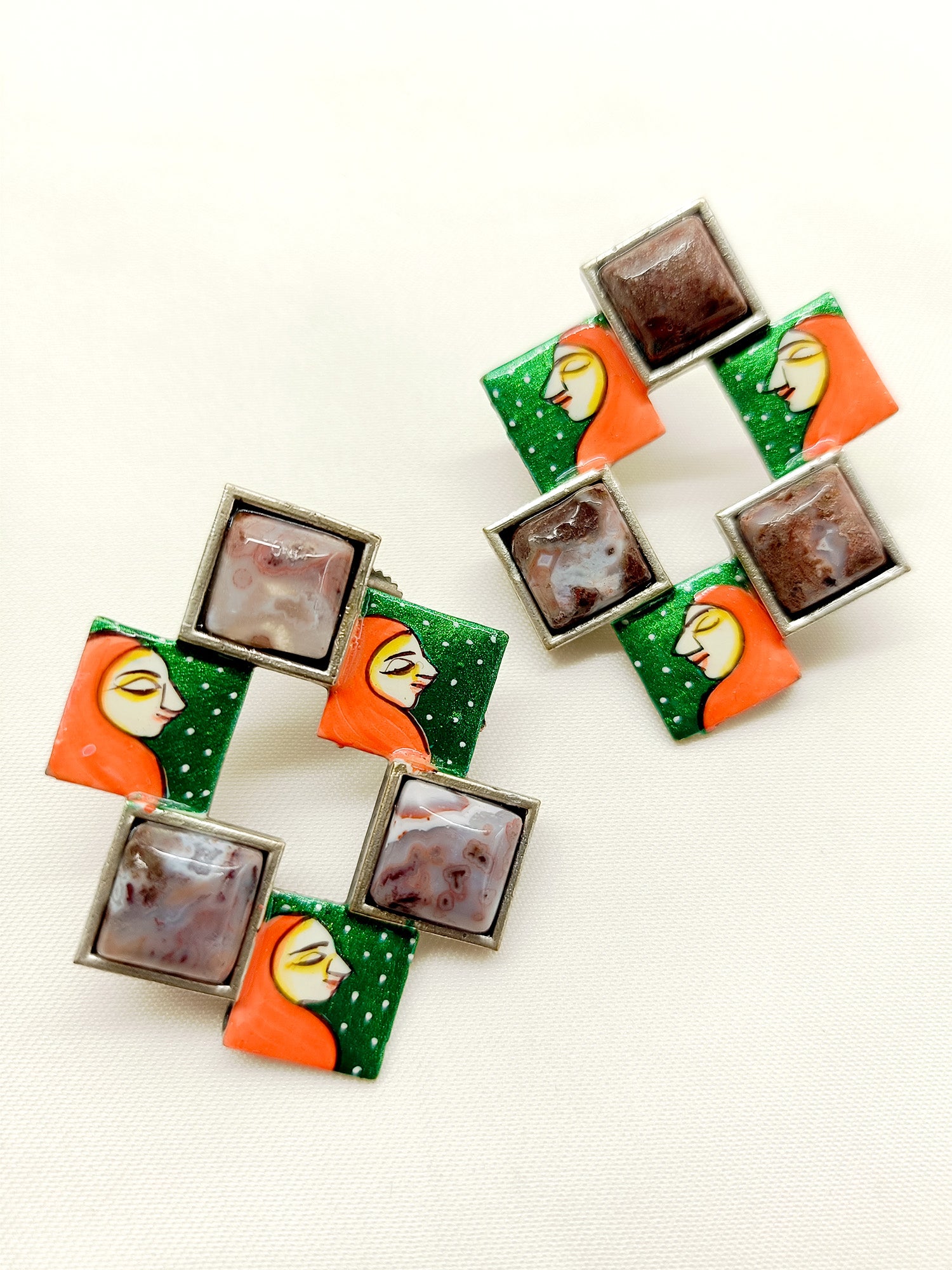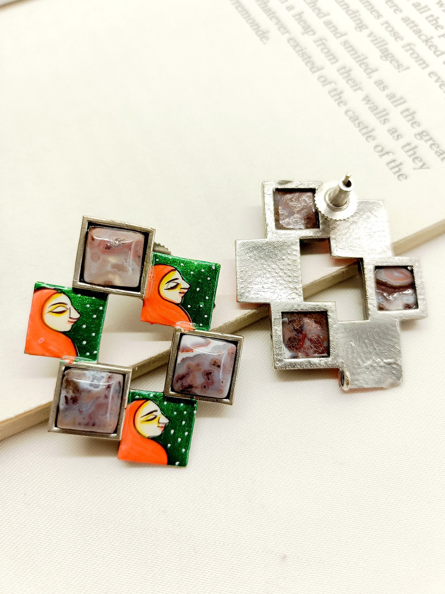 Crafted With Precision, These German Silver Oxidized Earrings. Made From High-quality Silver Plated Brass Metal, They Are A Must-have Accessory For Any Cultural Event. Stand Out With These Elegant Earrings That Showcase Traditional Design In A Modern Way.