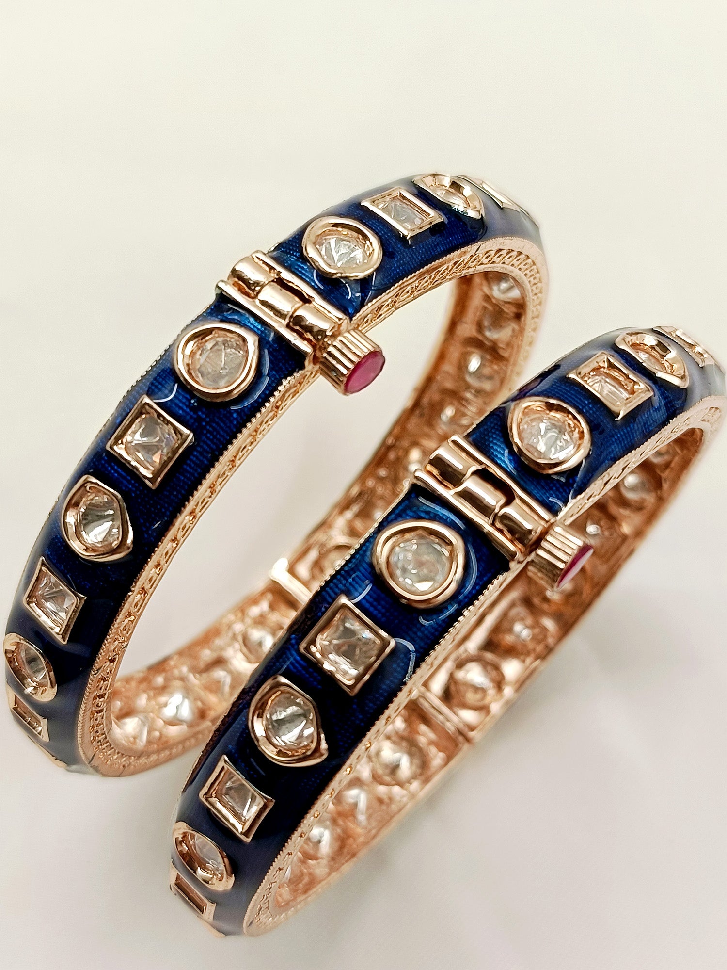 This Openable Kundan Bangle Is Perfect For Any Occasion. Made Of Premium Gold Plating And Kundan, It Is Durable And Visually Stunning. The Intricate Detailing And Craftsmanship Of These Pieces Make A Beautiful Addition To Any Jewelry Collection.