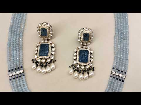 Rehemat Navy Blue Stone Gold & Rhodium Plated Victorian Set