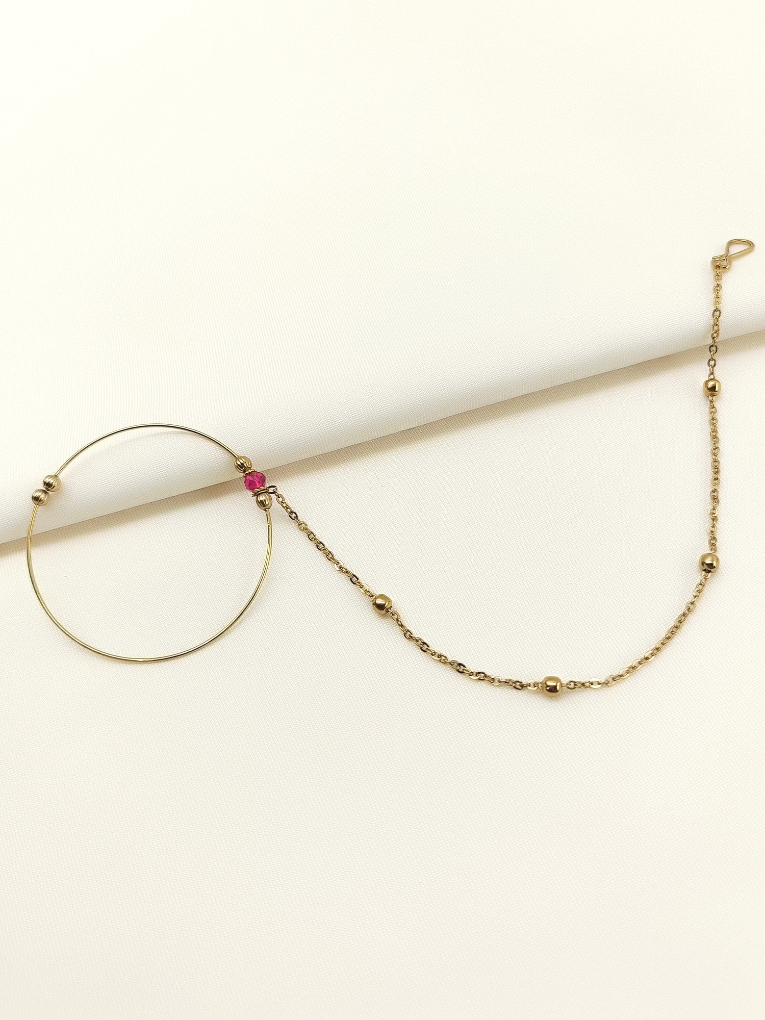 Elevate your traditional ensemble with this exquisite Pink Antique Nath, a timeless nose ornament crafted from premium brass metal with antique gold plating. The delicate beadwork adds intricate detail and vintage charm, making it an ideal accessory for weddings, festivals, and special occasions. The antique gold finish complements all skin tones while the ornamental beads create a sophisticated, heirloom-quality aesthetic. Perfect for those seeking authentic, handcrafted jewelry that blends cultural heritage with refined elegance.