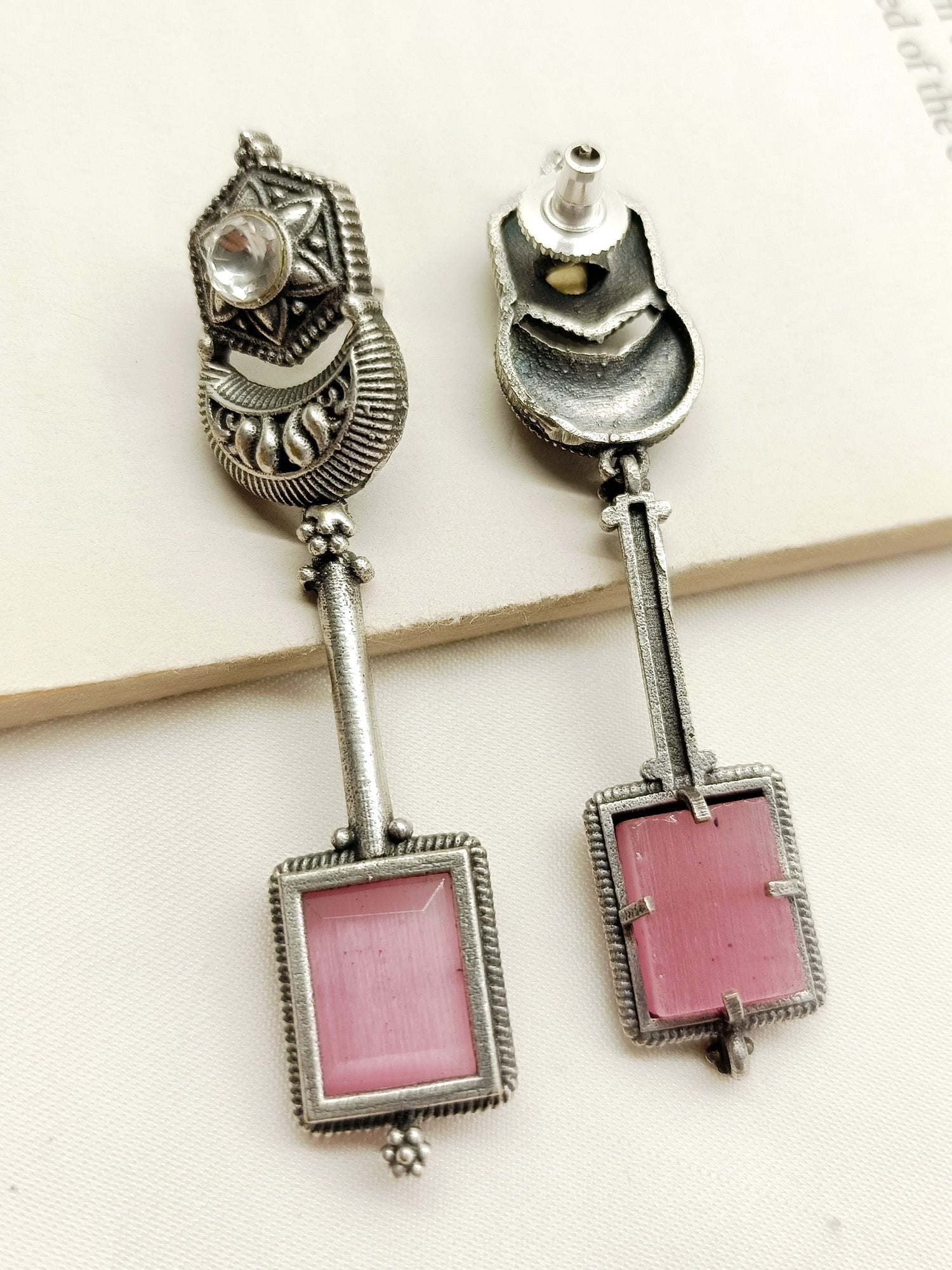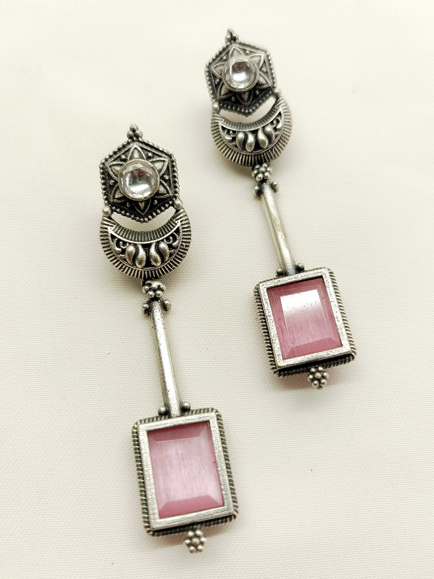 Crafted With Precision, These German Silver Oxidized Earrings. Made From High-quality Silver Plated Brass Metal, They Are A Must-have Accessory For Any Cultural Event. Stand Out With These Elegant Earrings That Showcase Traditional Design In A Modern Way.
