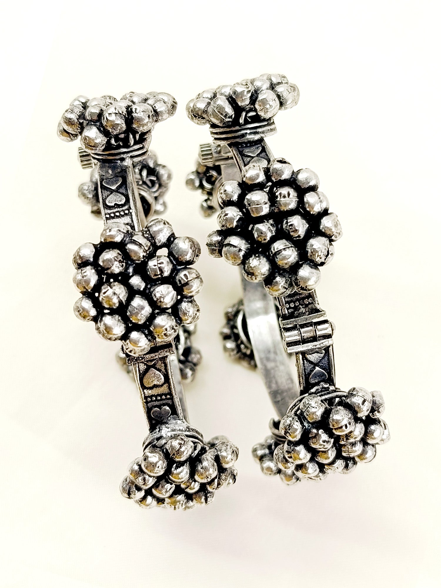 This Openable Oxidized Bangle Showcases Exquisite Fencing Detailing, All Crafted From Oxidized Silver Plated Brass Metal. Elevate Your Look With This Timeless Piece, Perfect For Any Occasion. Expertly Designed For A Sophisticated And Classic Aesthetic.