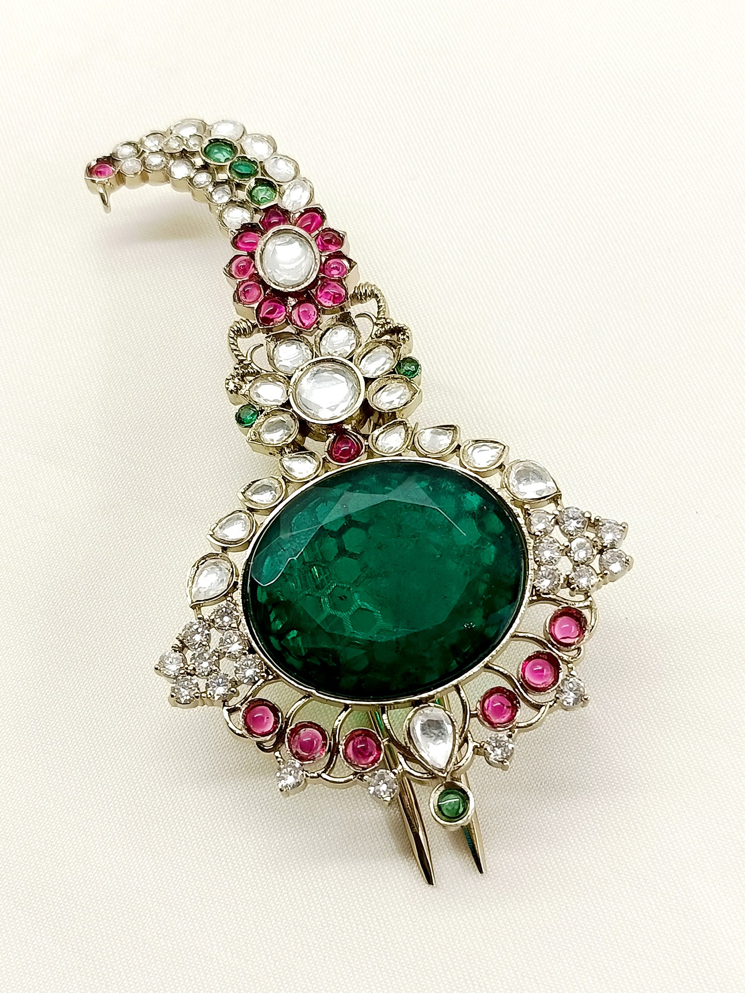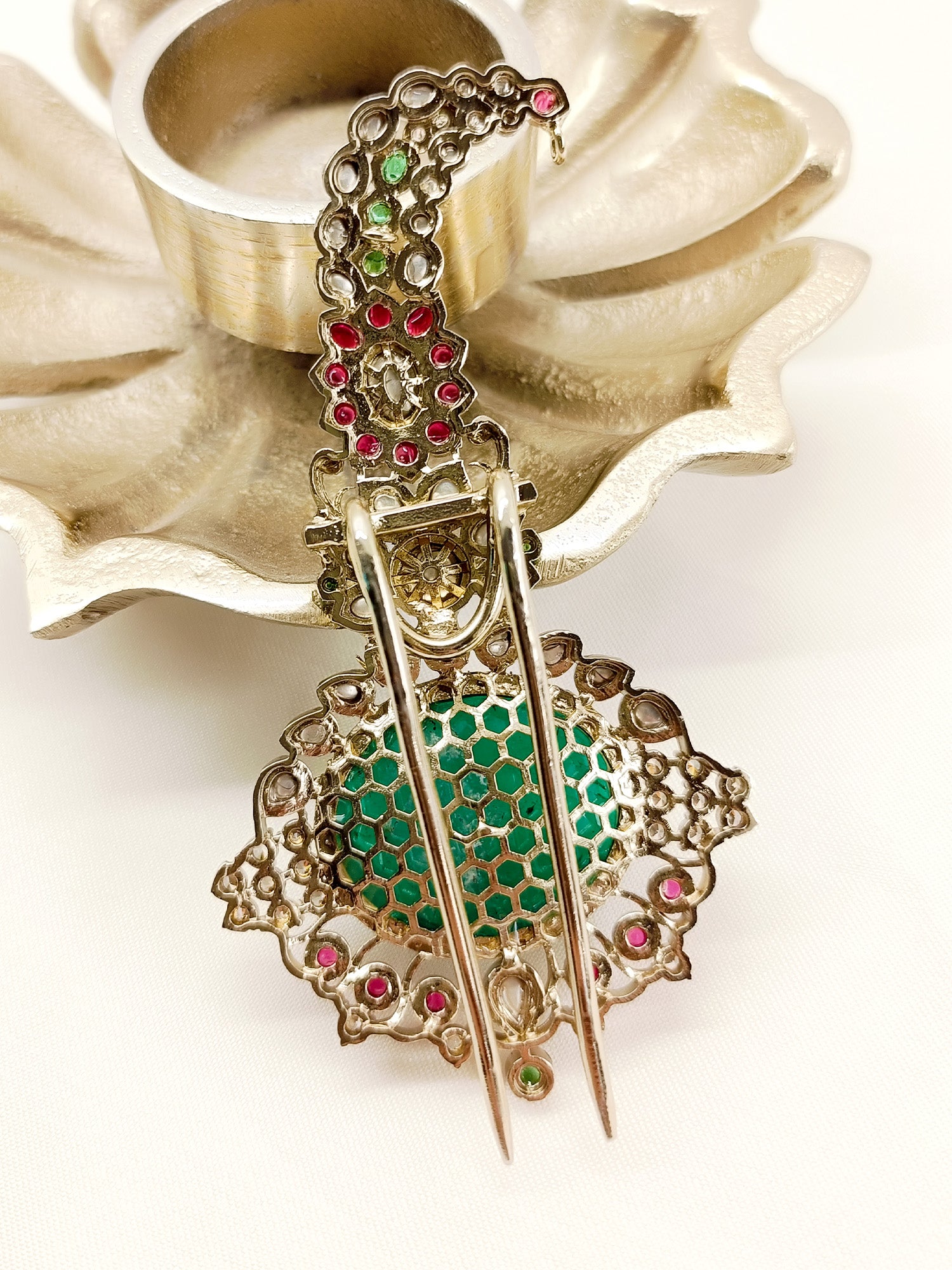 Experience The Elegance Of Our Traditional R&G Dulha Kalgi Made Of Antique Gold Plated Brass Metal, Adorned With Semi-precious Stones Such As American Diamond And Green Mossonite. Elevate Your Wedding Day Look With This Exquisite Accessory.