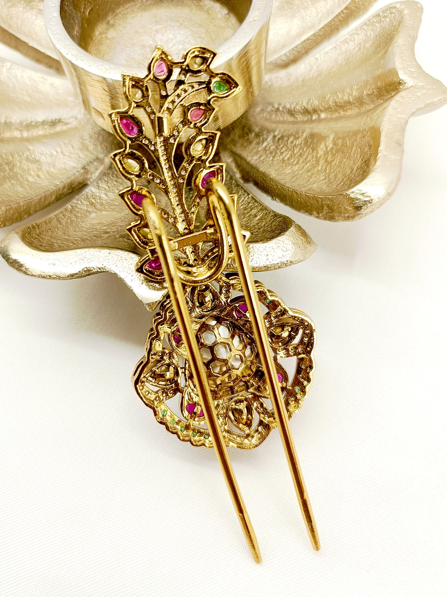 Enhance Your Wedding Attire With Our Kundan Dulha Kalgi. Made With Gold Plated Brass Metal And Exquisite Kundan Work, It Features A Stunning American Diamond Setting And Elegant Pearl Hanging. Elevate Your Look With This Traditional And Timeless Accessory.