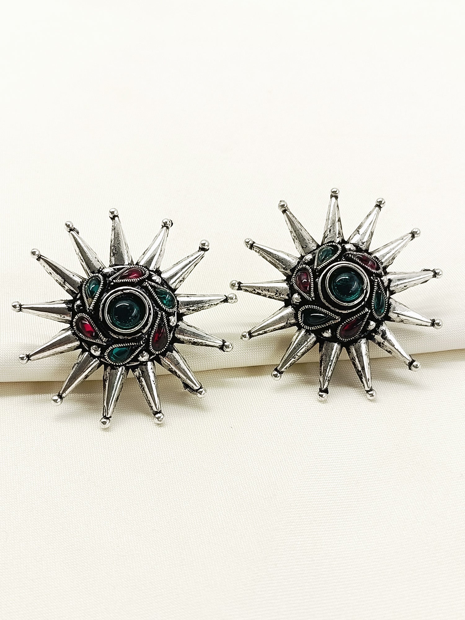 These Oxidized Tops Feature Expertly Crafted Oxidized Silver Plating That Enhances Their Vintage Appeal. Each Piece Is Adorned With A Carefully Selected Semi-precious Stone, Adding A Subtle Yet Striking Touch Of Color. Designed For Those Who Appreciate Artisanal Quality And Timeless Style, These Tops Offer Durability And A Distinctive Look That Complements A Variety Of Outfits. Ideal For Adding An Elegant, Earthy Accent To Your Jewelry Collection.