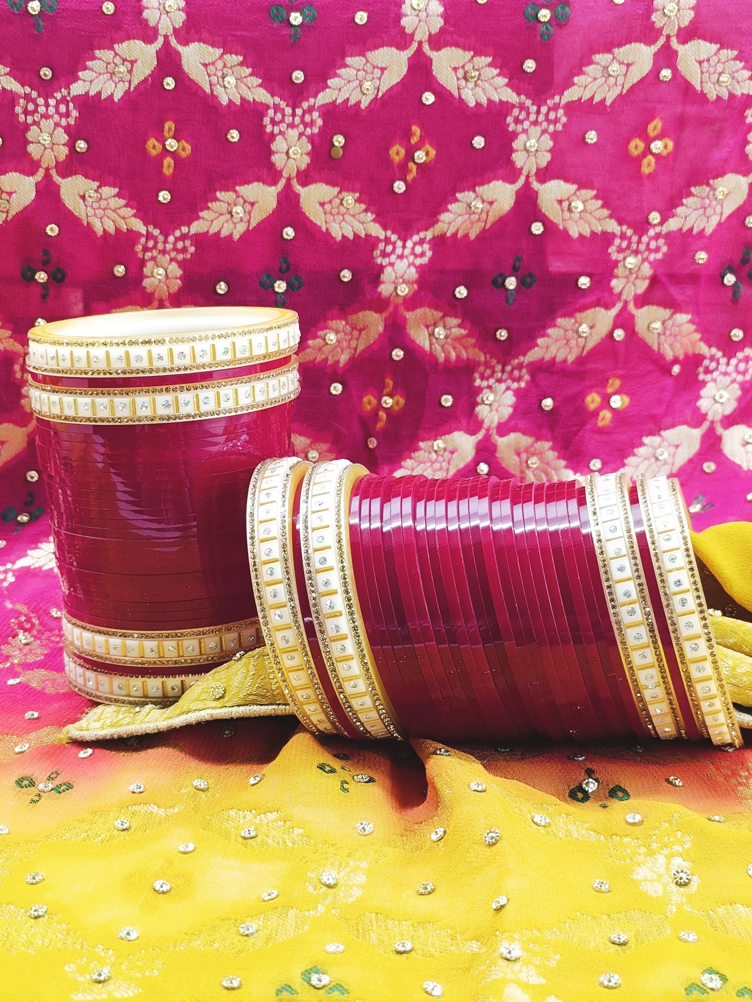 Celebrate Timeless Punjabi Traditions With The Traditional Red Punjabi Chura. These Handcrafted Red Bangles Are Essential For Brides, Symbolizing Prosperity And Marital Bliss. Made With Precision, Their Vibrant Red Hue Complements Traditional Attire While Offering A Comfortable Fit For Extended Wear. Ideal For Weddings And Cultural Ceremonies, These Bangles Add An Authentic Touch To Your Ensemble, Reflecting Rich Heritage And Elegance.
