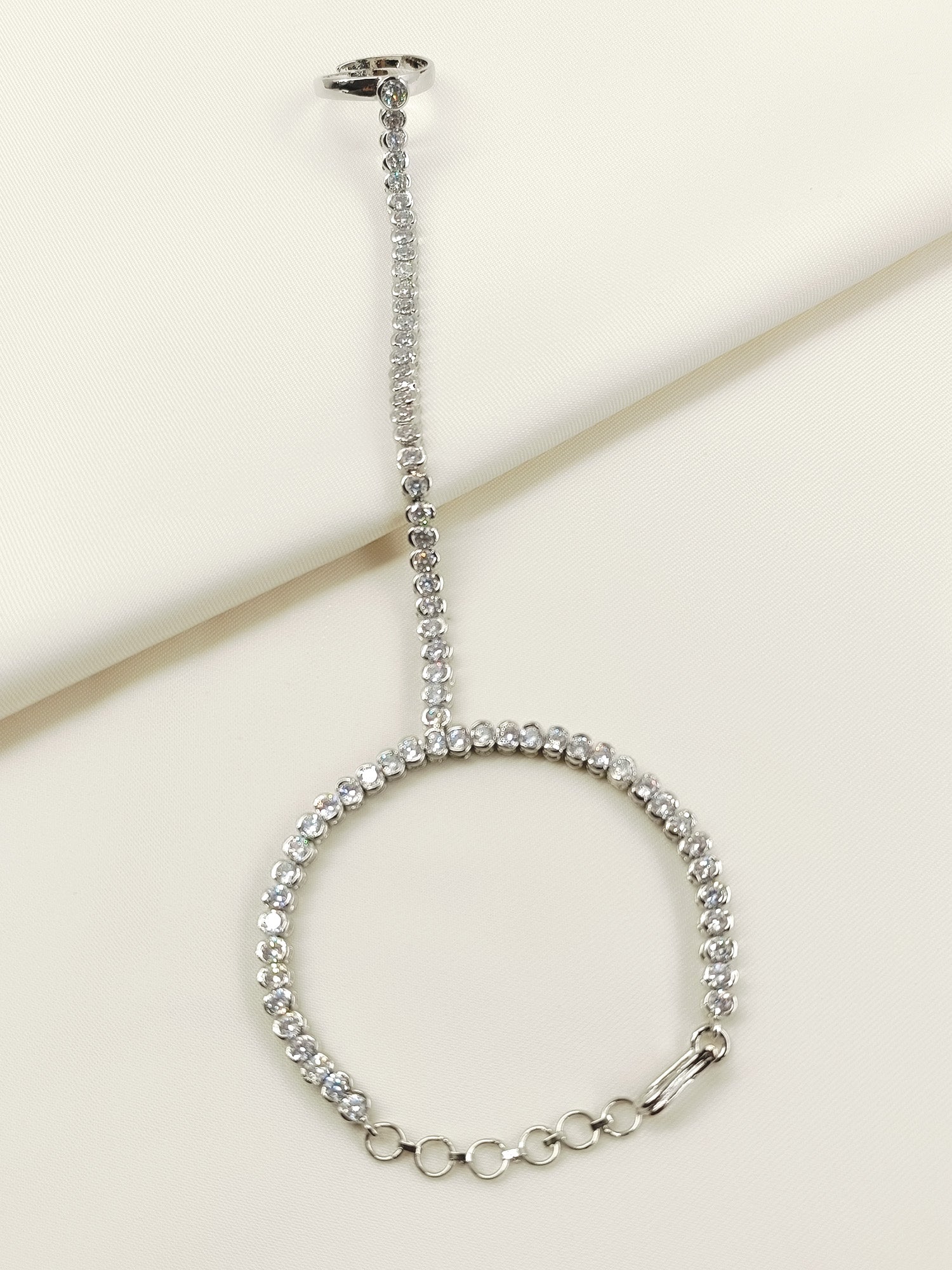 Elevate Your Hand Jewelry Collection With This Exquisite White American Diamond Hathphool. Crafted From Premium Brass Metal With Lustrous Silver Plating, This Piece Combines Durability With Timeless Elegance. The Brilliant White American Diamonds Catch Light Beautifully, Creating A Sophisticated Sparkle Perfect For Both Everyday Wear And Special Occasions. The Traditional Hathphool Design Adds Cultural Charm While The Quality Materials Ensure Lasting Radiance. An Ideal Choice For Those Seeking Affordable Luxury Without Compromising On Style Or Brilliance.