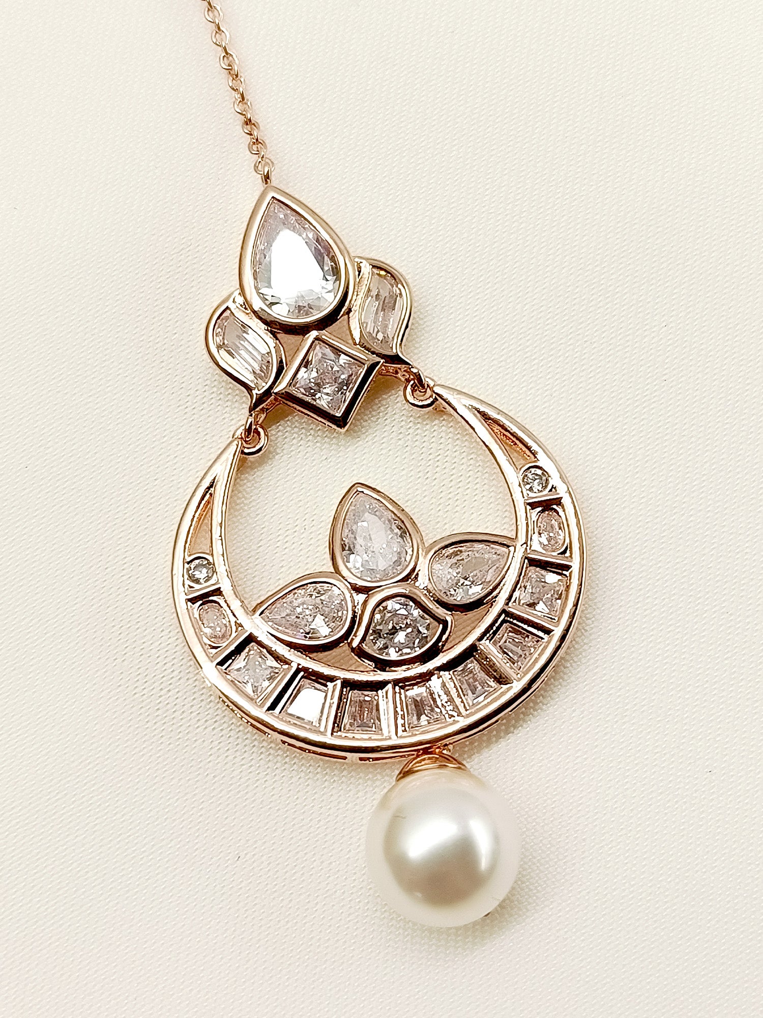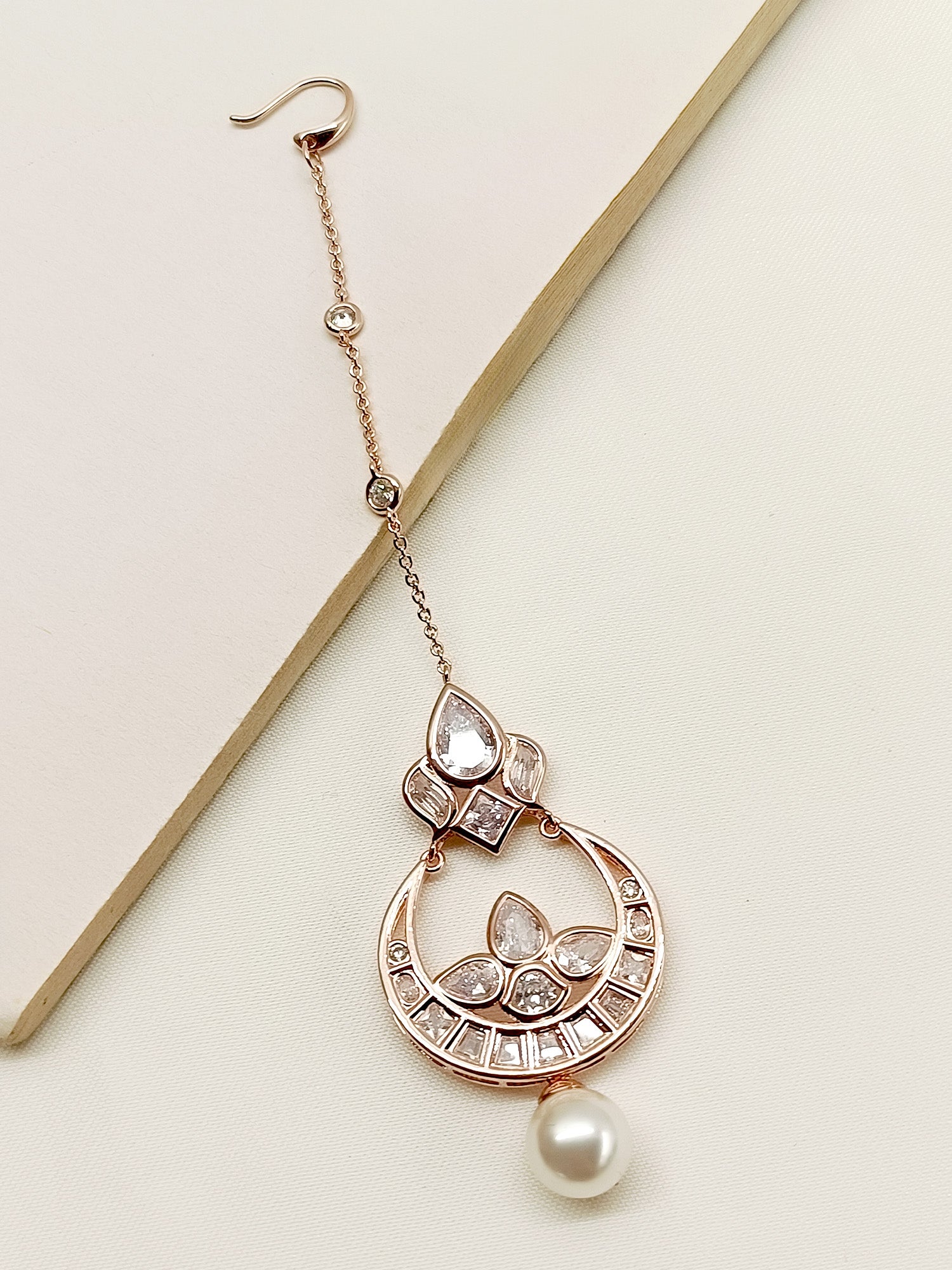 Experience Elegance With Our American Diamond Maang Teeka. Made With Rose Gold Plated Brass Metal, This Stunning Maang Teeka Is The Perfect Accessory To Complement Any Outfit. Add A Touch Of Glamour And Sophistication With The Sparkling American Diamonds That Are Sure To Turn Heads.