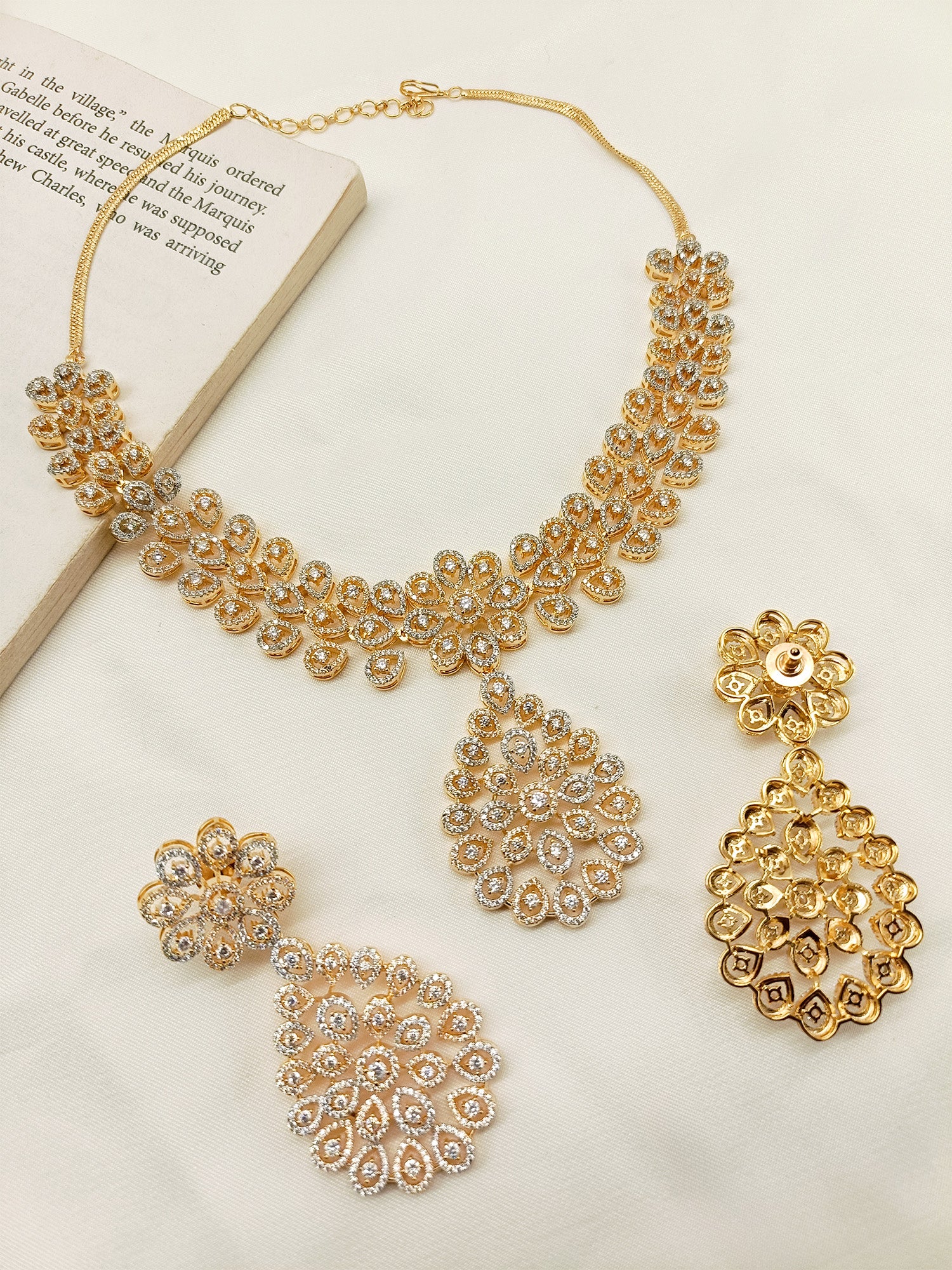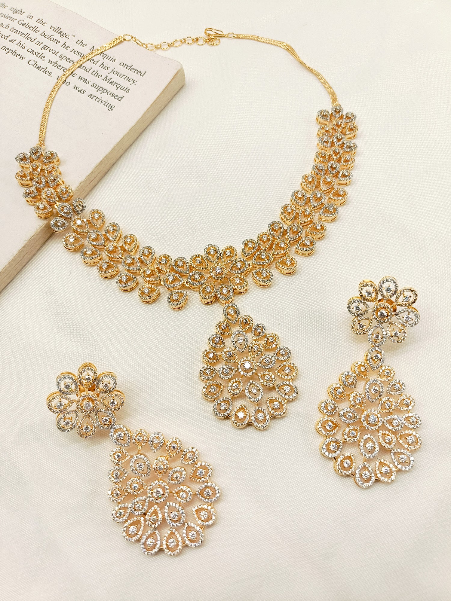 Prajakta White American Diamond Necklace Set