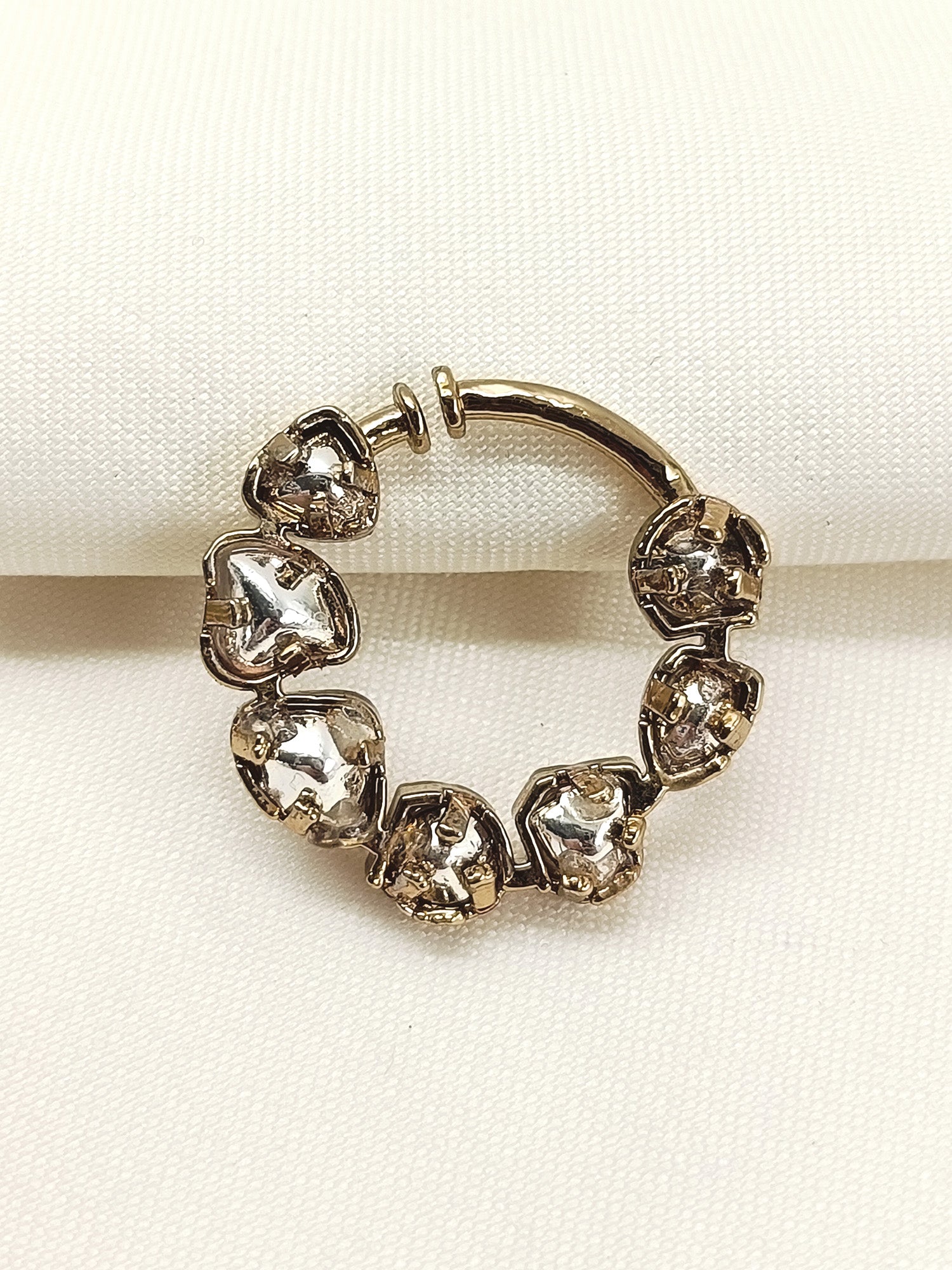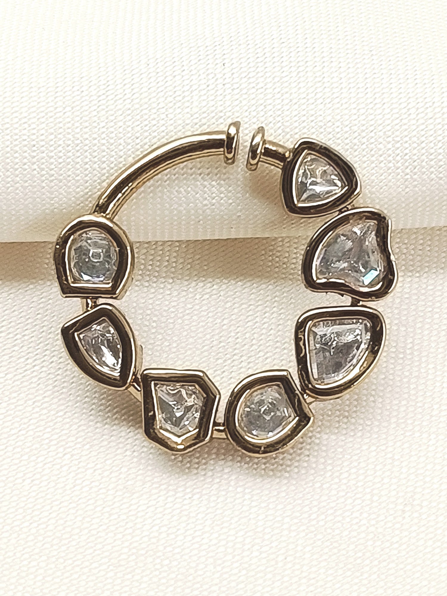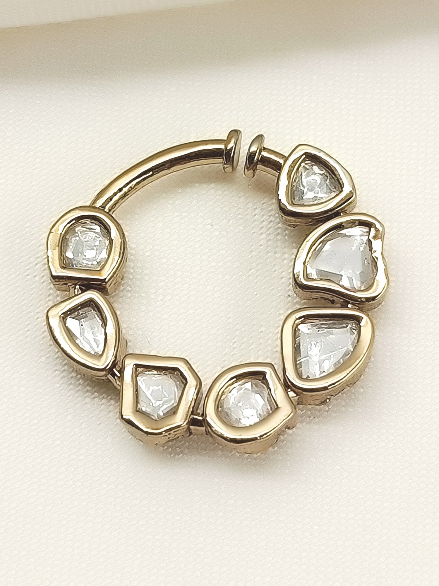 Expertly Crafted With Traditional Kundan Techniques, Our White Kundan Bridal Nath Is The Perfect Finishing Touch To Your Bridal Ensemble. Made With Antique Gold Plated Brass Metal, It Exudes Both Elegance And Cultural Heritage. Add A Touch Of Glamour To Your Wedding Day With This Timeless Piece.