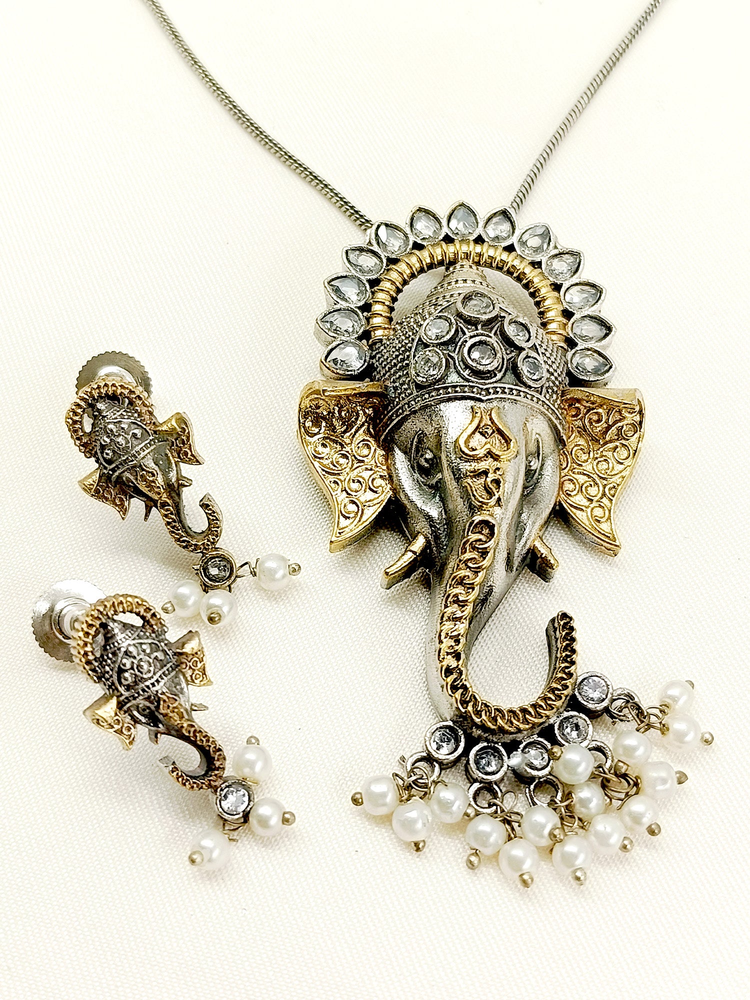 Gavya White Ganesh Ji Oxidized Pendant Set