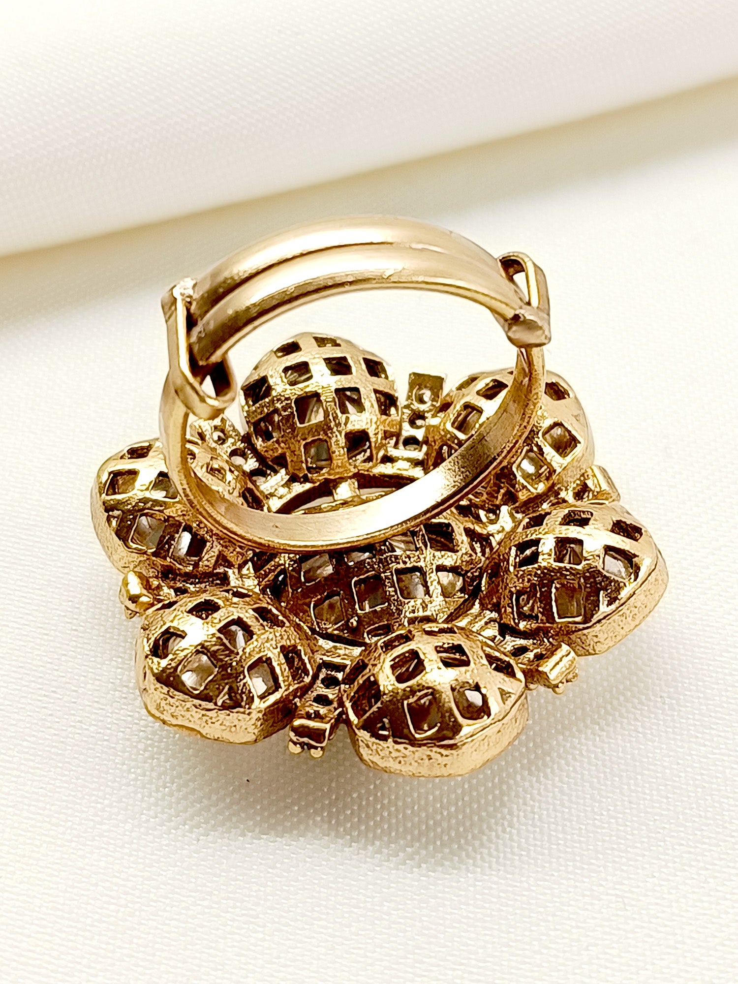Own The Ultimate Accessory With The Kundan Finger Ring. Made With Gold Plated Brass Metal, This Elegant And Adjustable Ring Exudes Luxury And Style. Elevate Any Outfit With This Statement Piece And Be The Envy Of All.