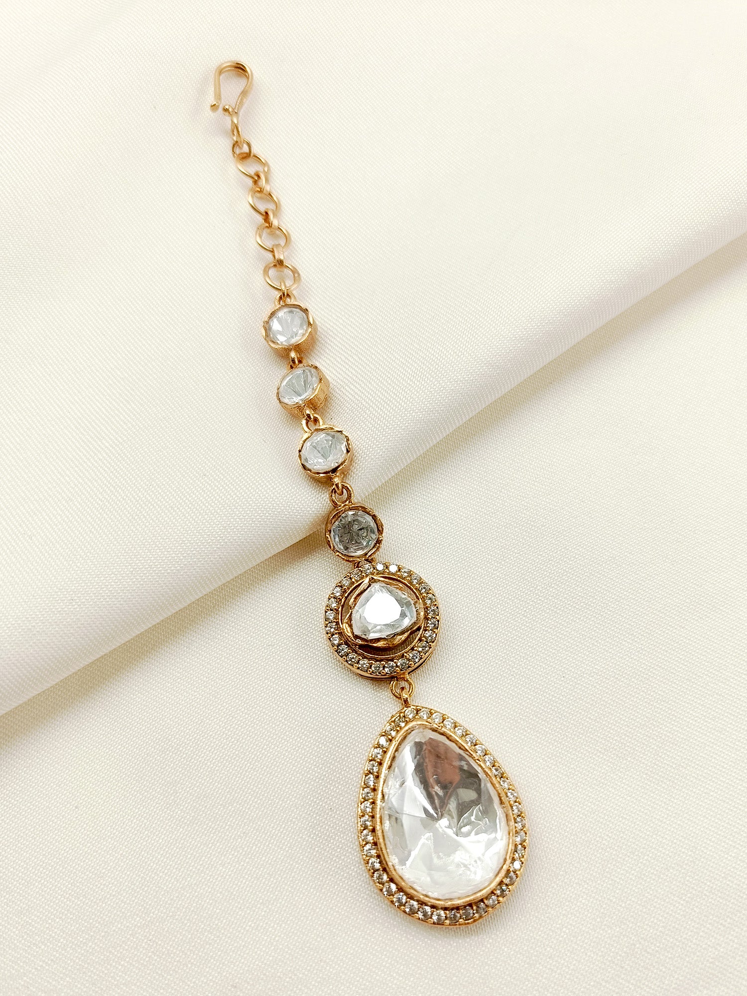 Introducing The Kundan Teeka, A Delicate Piece Of Jewelry Featuring Elegant American Diamonds And Expertly Crafted With Gold Plated Brass Metal. Elevate Your Outfit With This Stunning Teeka That Exudes Timeless Beauty And Sophistication. Perfect For Any Occasion, This Teeka Is A Must-have For Any Jewelry Collection.