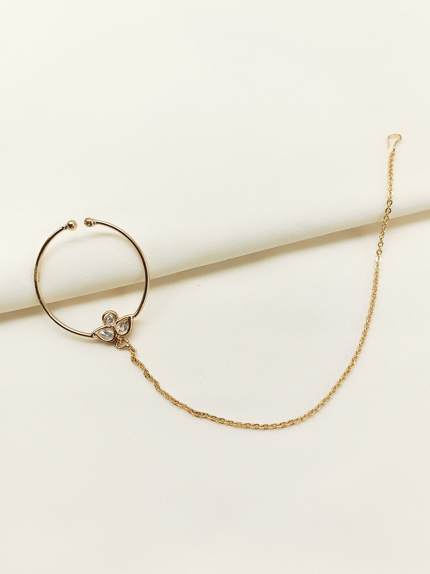 The Kundan Nath Combines Traditional Elegance With Refined Craftsmanship, Featuring Exquisite Kundan Stones Set On Gold-plated Brass Metal. This Lightweight Yet Durable Design Offers A Perfect Blend Of Timeless Appeal And Everyday Comfort, Making It An Ideal Accessory For Festive Occasions And Cultural Celebrations. Its Intricate Detailing Highlights The Artistry Of Kundan Work, Ensuring A Sophisticated Statement Piece That Complements A Variety Of Ethnic Ensembles.