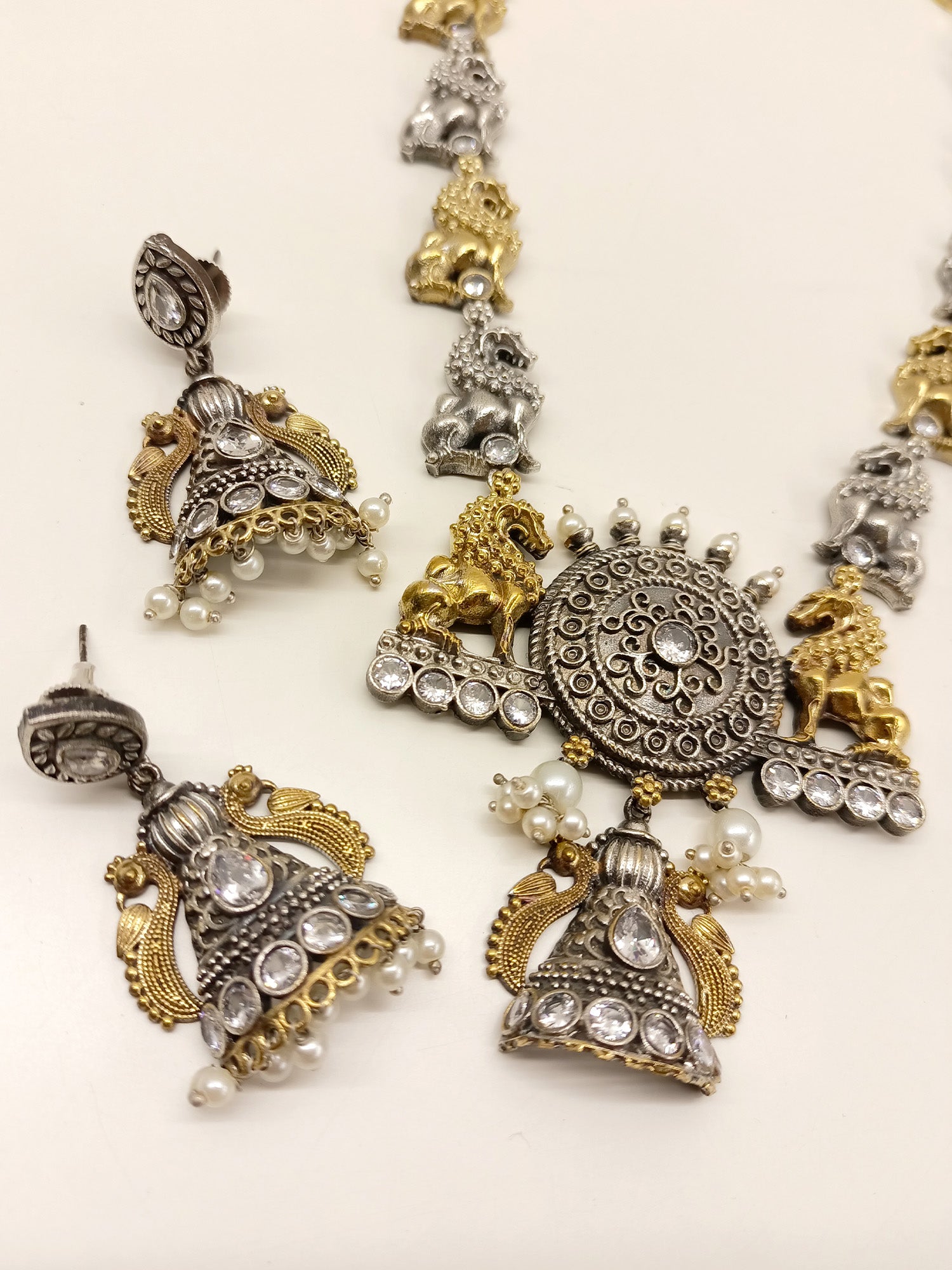 Jhodha White Long Oxidized Set