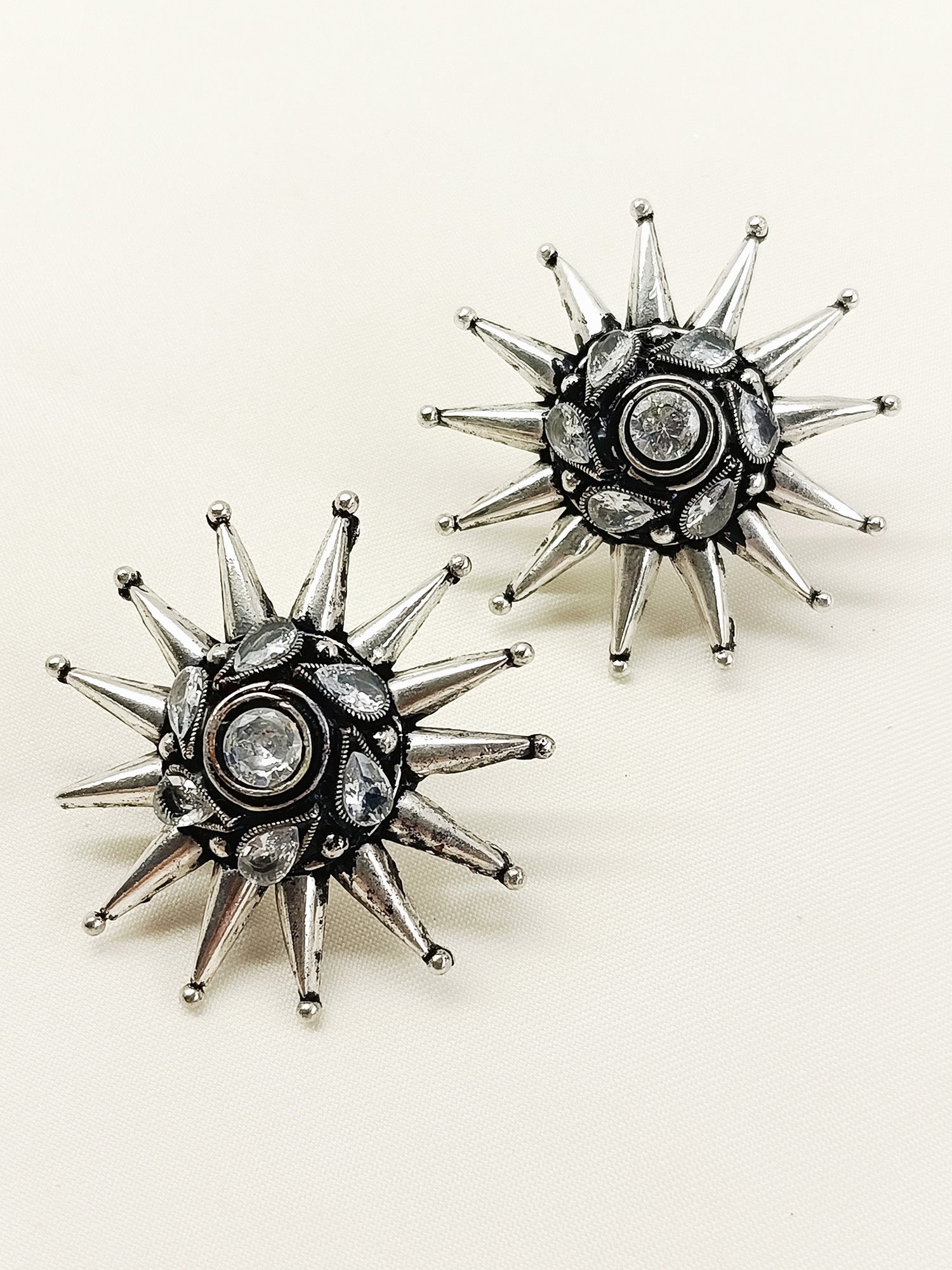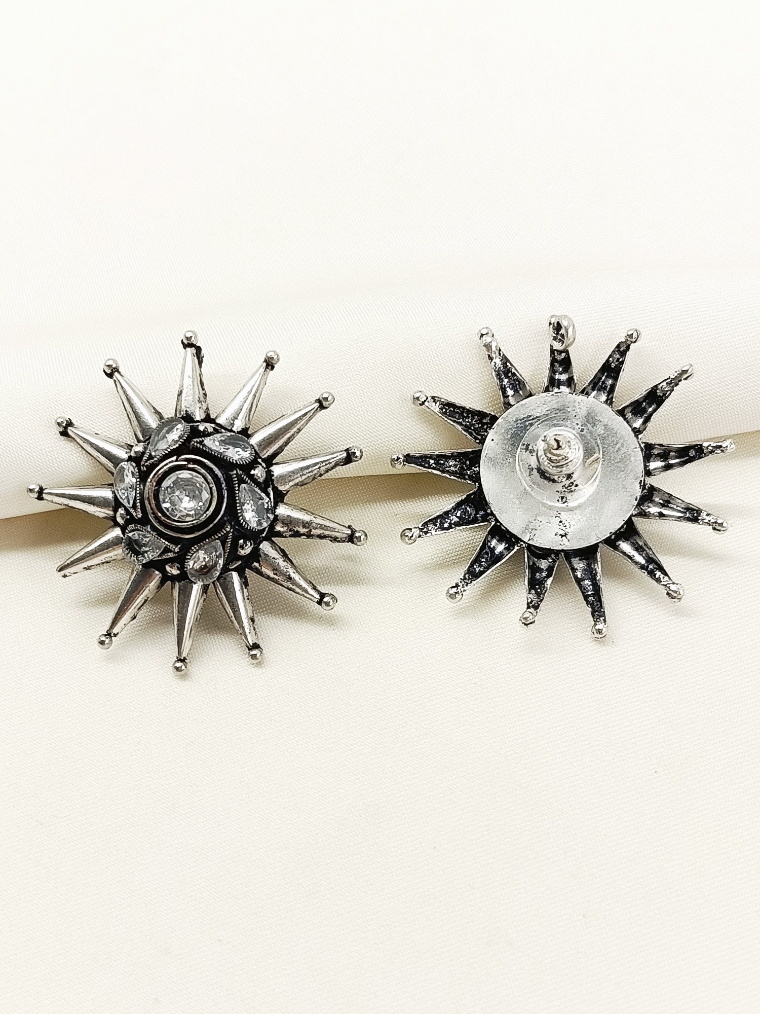 These Oxidized Tops Feature Expertly Crafted Oxidized Silver Plating That Enhances Their Vintage Appeal. Each Piece Is Adorned With A Carefully Selected Semi-precious Stone, Adding A Subtle Yet Striking Touch Of Color. Designed For Those Who Appreciate Artisanal Quality And Timeless Style, These Tops Offer Durability And A Distinctive Look That Complements A Variety Of Outfits. Ideal For Adding An Elegant, Earthy Accent To Your Jewelry Collection.