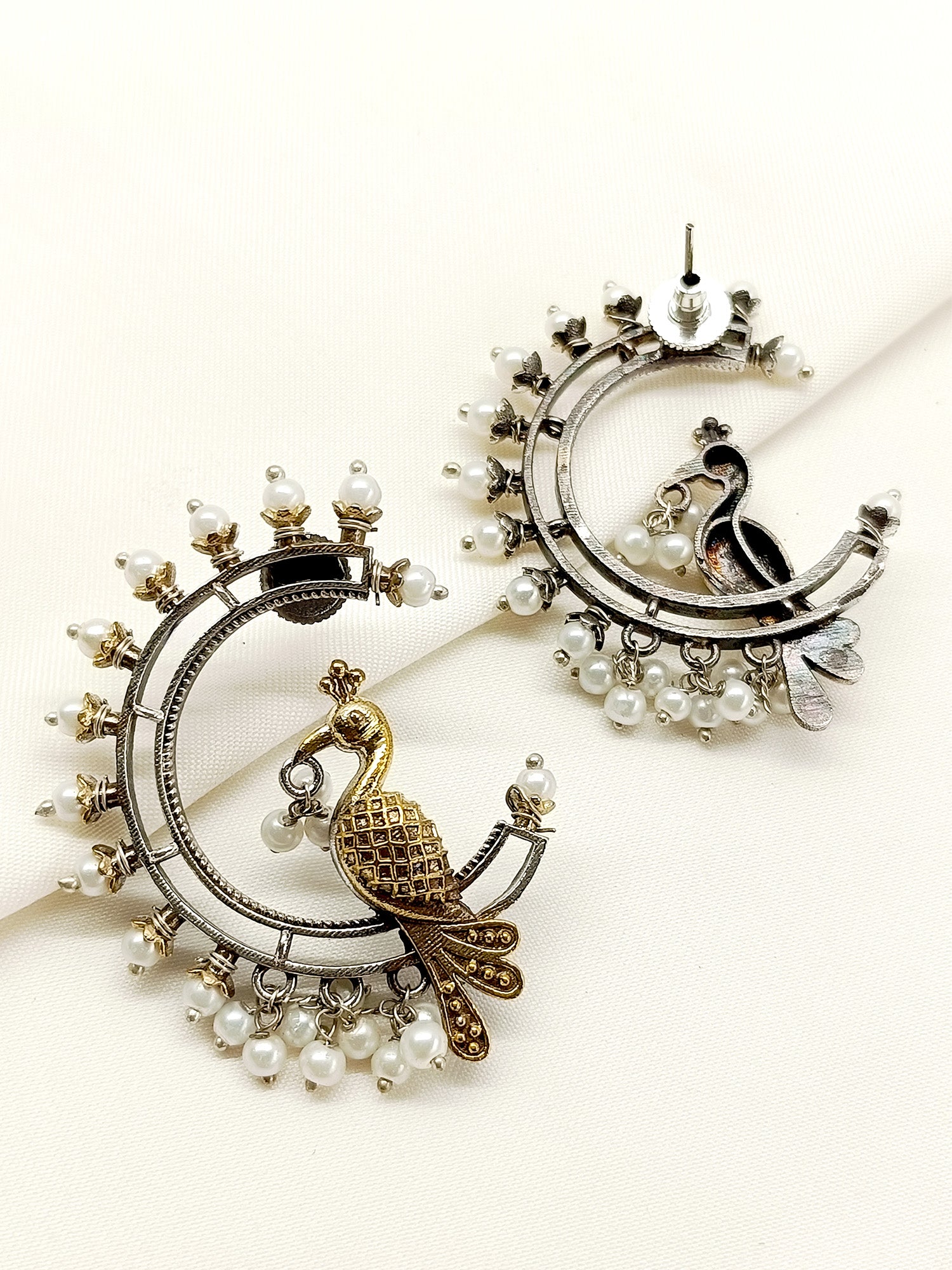 Crafted With Precision, These German Silver Oxidized Earring. Made From High-quality Silver Plated Brass Metal, They Are A Must-have Accessory For Any Cultural Event. Stand Out With These Elegant Jhumki That Showcase Traditional Design In A Modern Way.