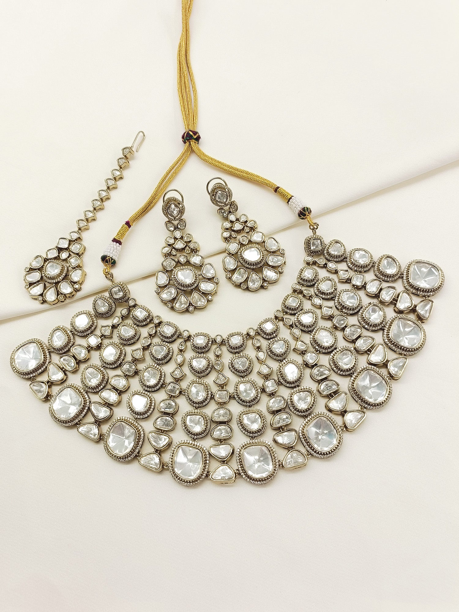 This White Victorian Necklace Set Features Antique Gold Plating On Durable Brass Metal, Accented With Carefully Selected Semi-precious Stones. Designed To Evoke Timeless Elegance, It Offers Both Classic Appeal And Lasting Quality, Making It An Expert Choice For Those Seeking Refined Vintage-inspired Jewelry.