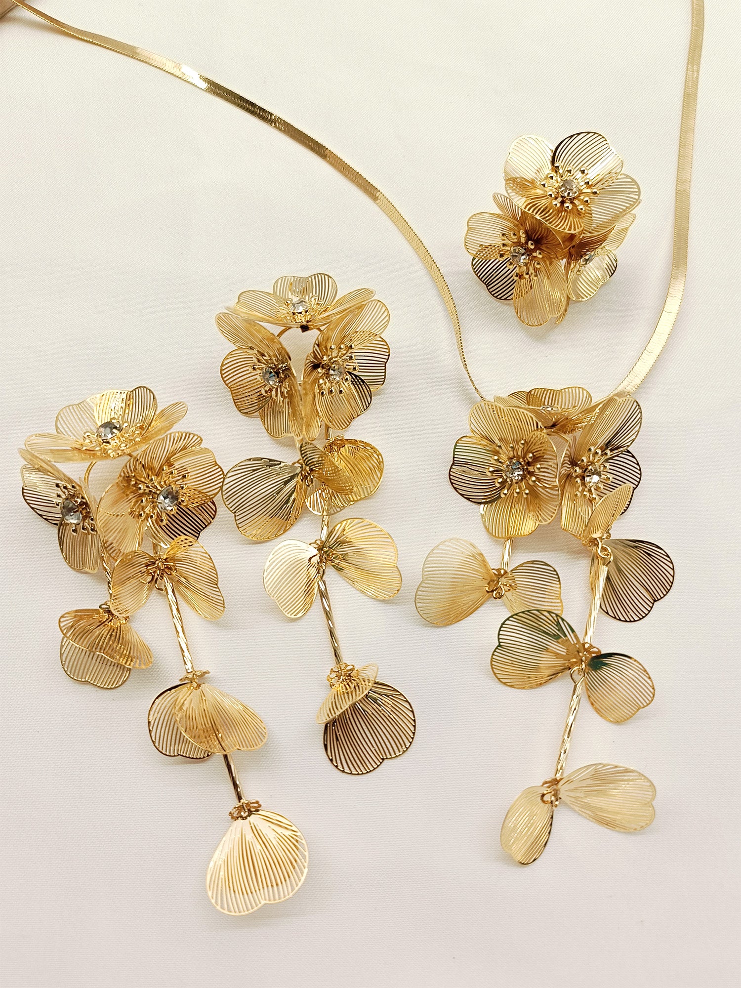 Experience Western Elegance With This Western Necklace Set. Crafted With Light-weighted, Gold-plated Brass Metal And Adorned With Sparkling American Diamonds, This Set Includes A Matching Finger Ring For A Complete Look. Make A Statement With This Stunning Set Perfect For Any Occasion.