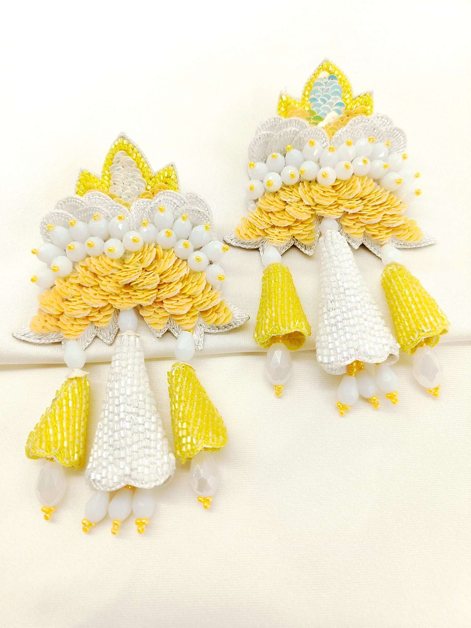 This Handmade Earrings Are Crafted With Careful Attention To Detail Using Intricate Embroidery Of Cloth And Crystal. The Unique Combination Of Colours And Tasseled Makes This Stand Out From The Ordinary. Perfect For Adding A Special Touch To Any Outfit.