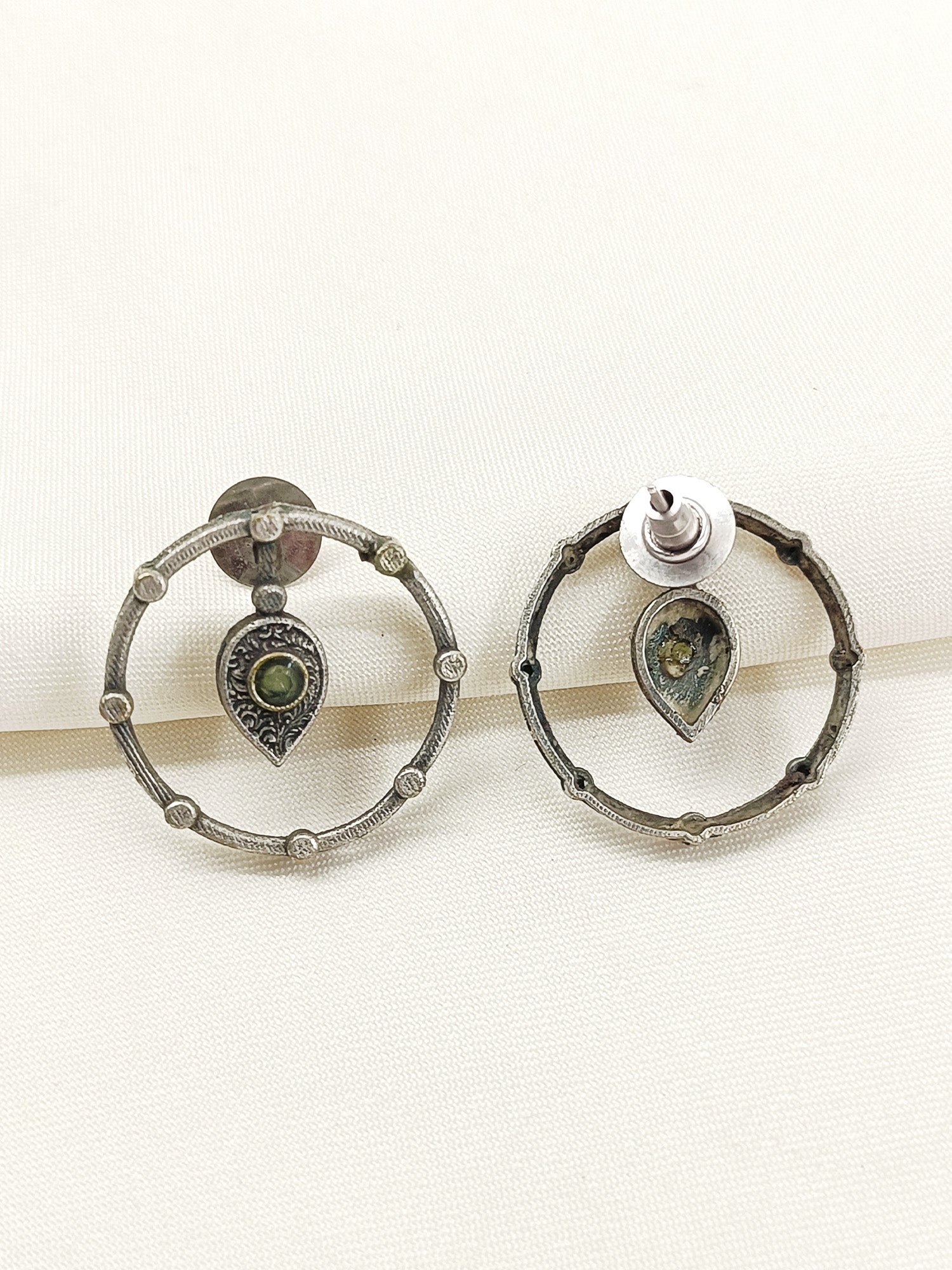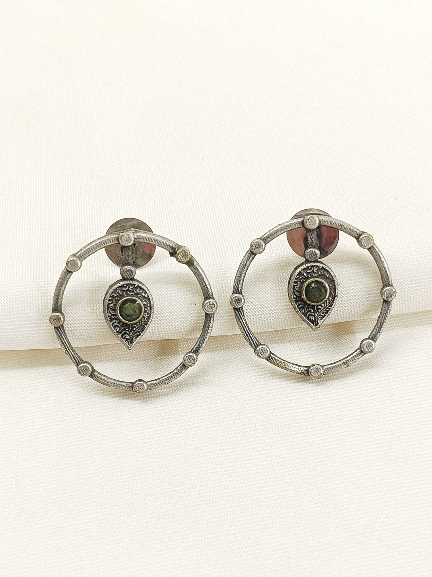 Crafted From Oxidized Silver-plated Brass, These Oxidized Tops Feature Carefully Selected Semi Precious Stones That Add A Distinctive Touch Of Elegance. The Oxidized Finish Enhances Durability While Providing A Vintage-inspired Aesthetic, Making Them A Sophisticated Choice For Those Seeking Unique, Expert-crafted Jewelry Pieces.