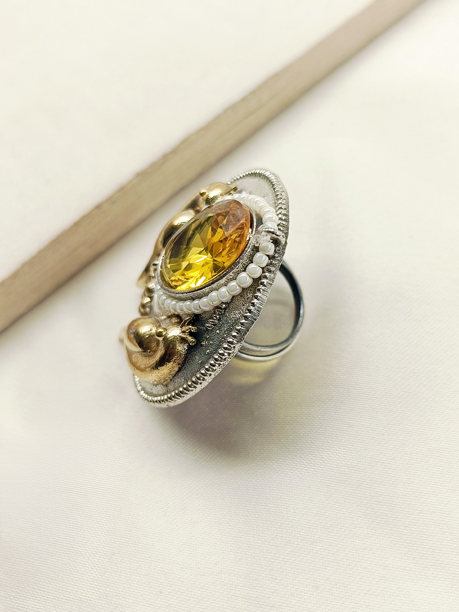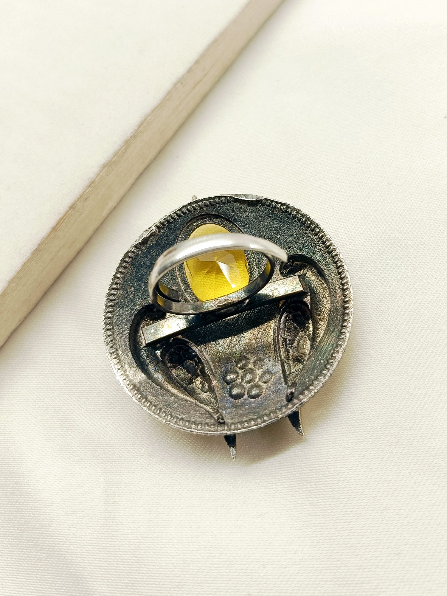 Girjaa Yellow Peacock Oxidized Finger Ring